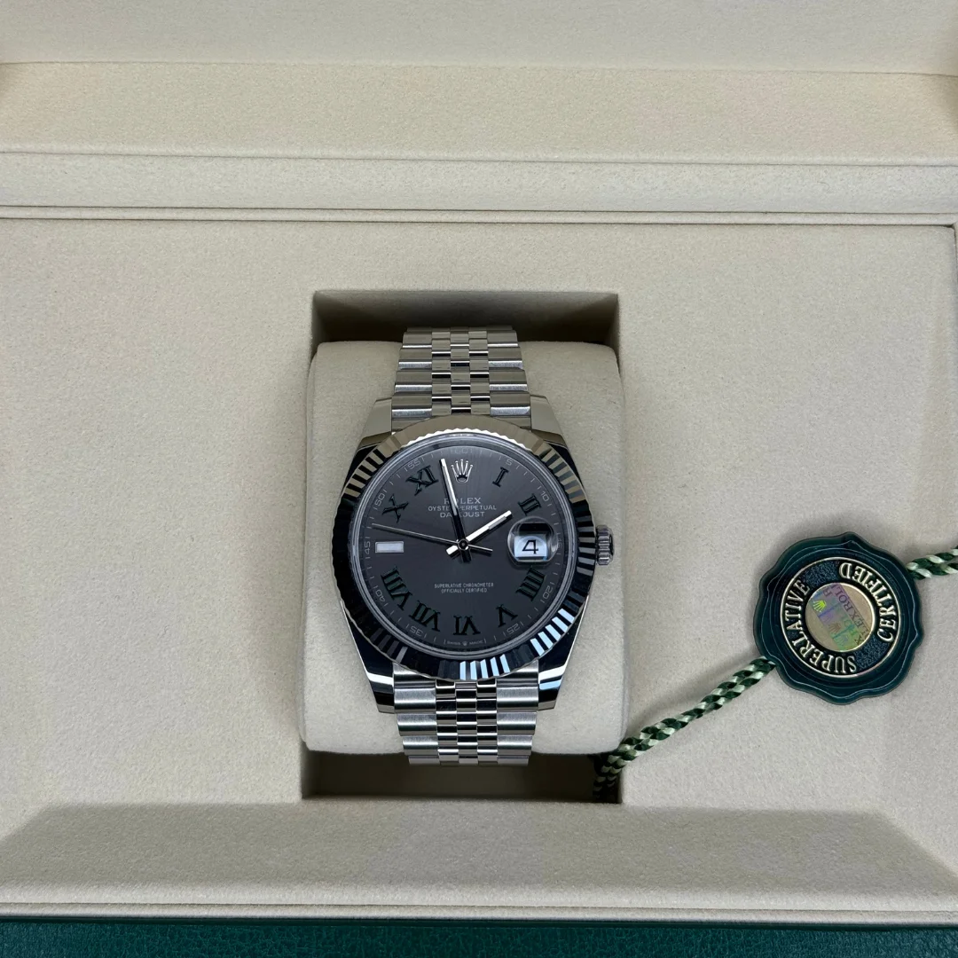The Rolex Datejust 41 is an oversized variation of Rolex' iconic Datejust model, replacing the relatively short-lived Datejust II. It was introduced in 2016 for the Rolesor (two-tone) models, and 2017 for the stainless steel variations. As indicated in the name, the case measures 41mm across. It houses Rolex' caliber 3235 movement, which features a 70-hour power reserve and a Chronergy escapement. As customary with the Datejust family, the Datejust 41 is available in a range of configurations. Reference 126334 has a stainless steel case and a white gold fluted bezel. It is fitted with either an Oyster or Jubilee bracelet.