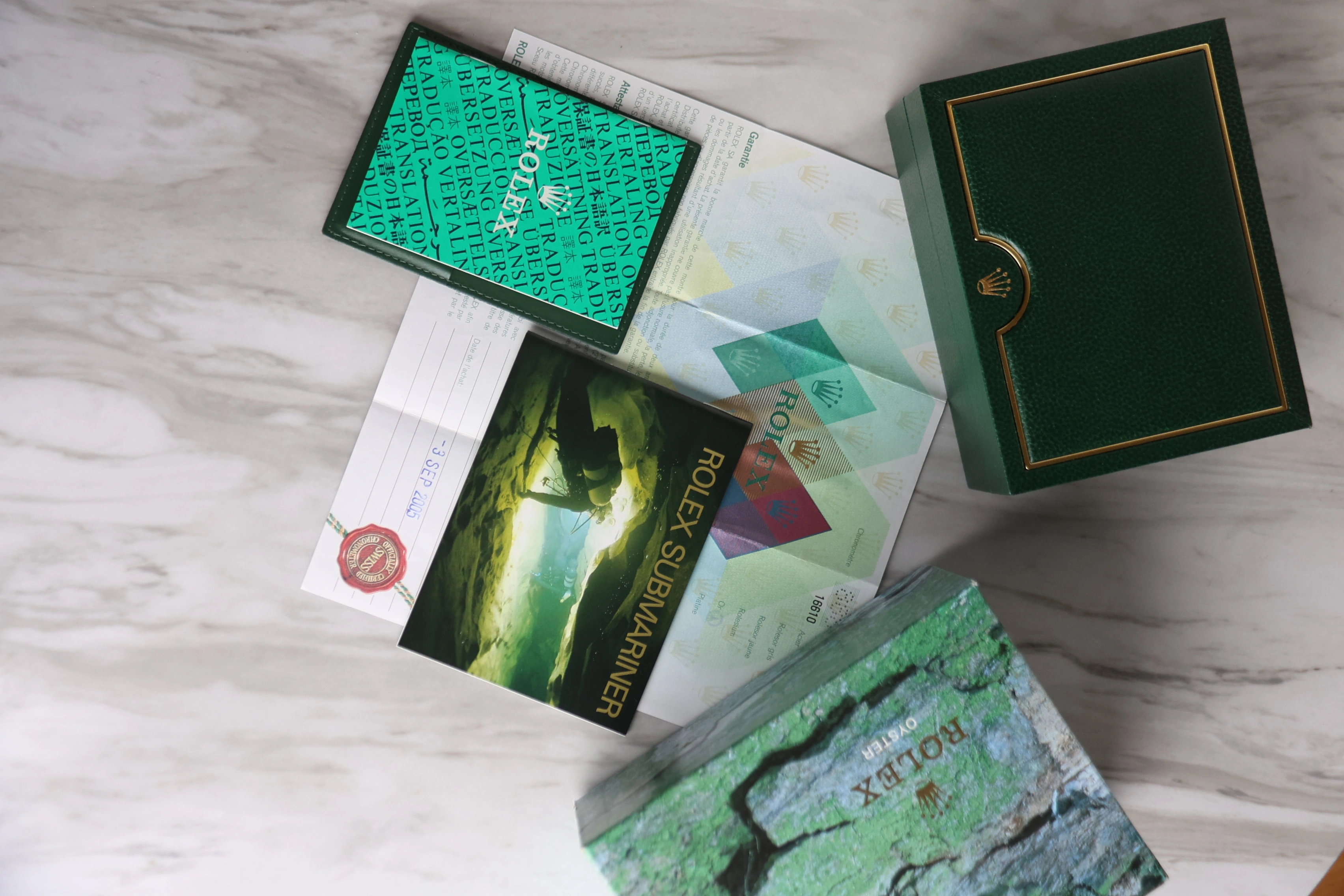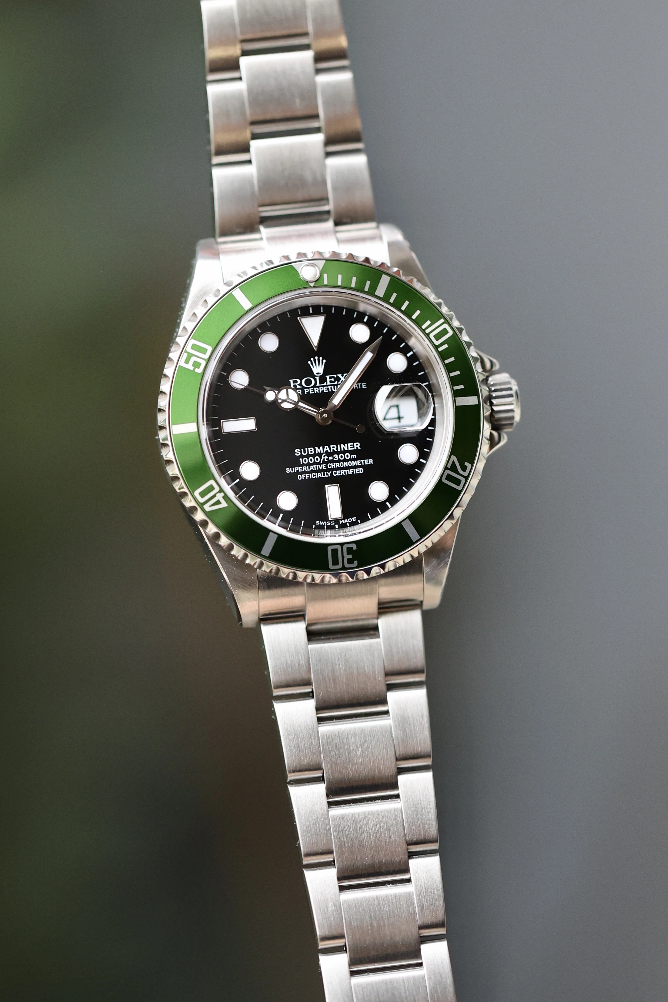 Rolex made in 2003 a significant decision to launch its very first anniversary edition to celebrate 50 years of Submariner excellence. The reference 16610LV features a bright green bezel and a unique Maxi-Dial adorned with larger luminescent plots. The 1661o LV quickly became a collector's favorite due to its distinctive design and historical significance. Ref. 16610LV is powered by Rolex's caliber 3135, an automatic movement.