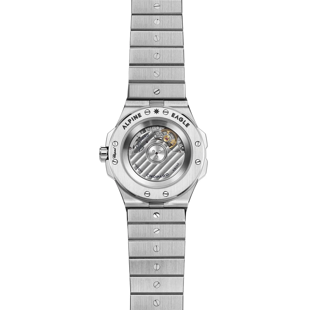 Chopard Alpine Eagle 36 Ref. 298601-3002 Contemporary, refined and assertive, the new sport-chic Alpine Eagle timepiece collection is a contemporary reinterpretation of the St Moritz, the first watch created in 1980 by Karl-Friedrich Scheufele, now co-president of the Chopard house. Imagined and personally designed by him, the Alpine Eagle was driven by his passion for the Alps and by the lofty power of the eagle that reigns supreme there. Crafted from an exclusive, ultra-resistant, light-reflecting metal named Lucent Steel A223 –, it beats to the rhythm of a Chronometer-certified movement.
