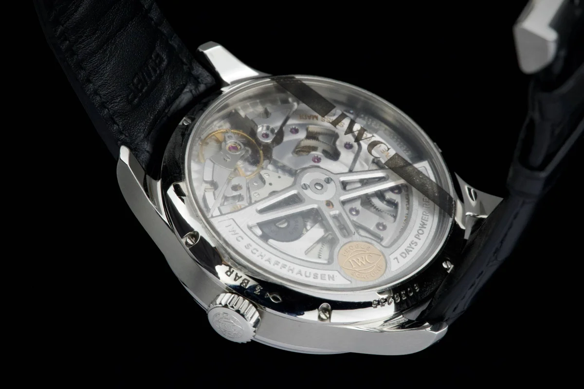 The IWC Portugieser Annual Calendar reference IW5035-07 was introduced in 2016 as a limited edition of 25 pieces in honor of the 75th anniversary of Pisa jewelers. It features a stainless steel case and a black dial with orange accents. Located at “12 o’clock” on the dial, IWC’s annual calendar shows the month, date and day in three separate windows. The mechanism automatically takes into account the differing lengths of individual months. Unlike a perpetual calendar, however, the annual calendar is unable to make allowance for the leap days in February or the leap years.