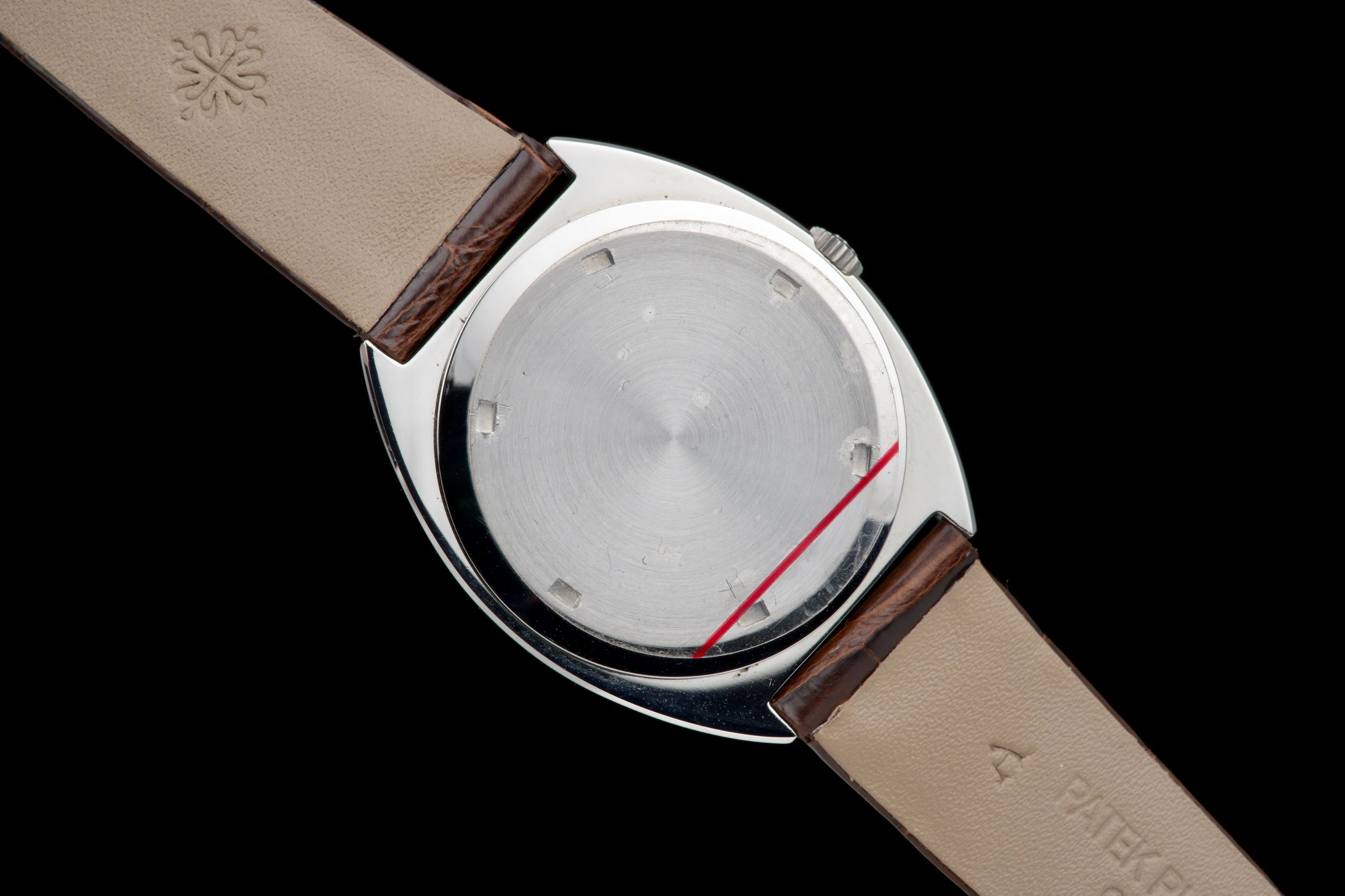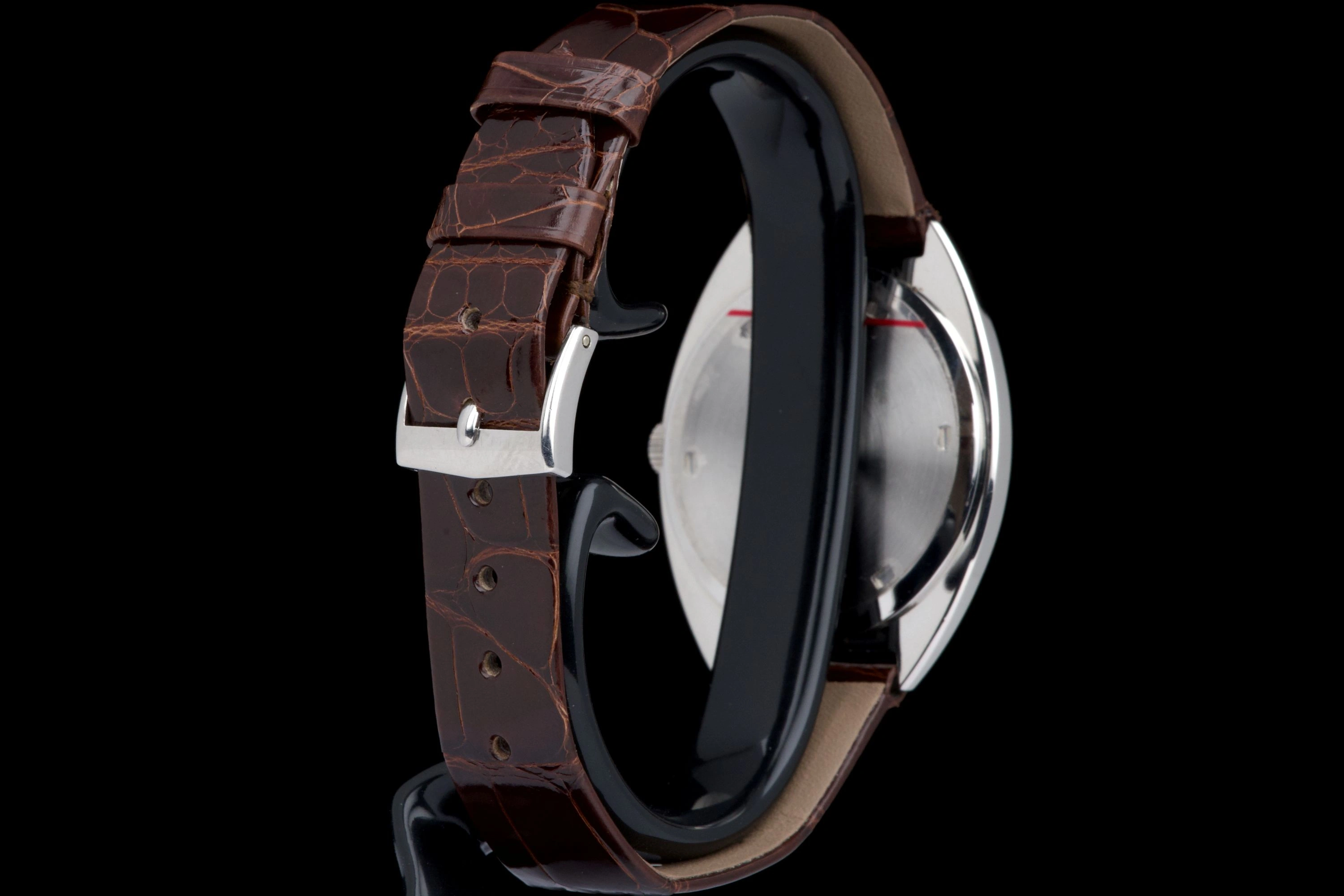 It is fitted with a brand-new brown crocodile strap and the original steel tang buckle, and the original worn crocodile strap is also included in the ensemble. The completeness of the set is truly remarkable