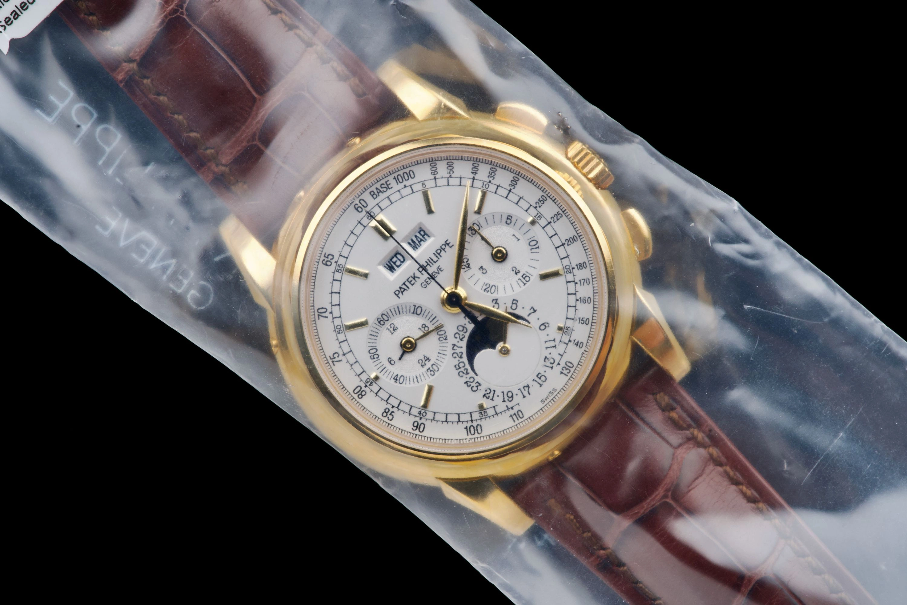 An extraordinary and highly collectible example of the Patek Philippe Perpetual Calendar Chronograph reference 5970J, presented in single-sealed condition.