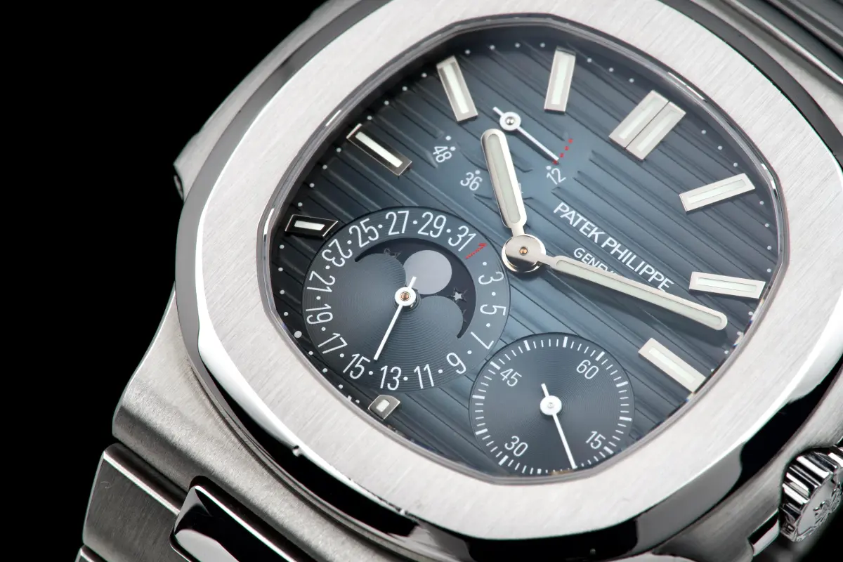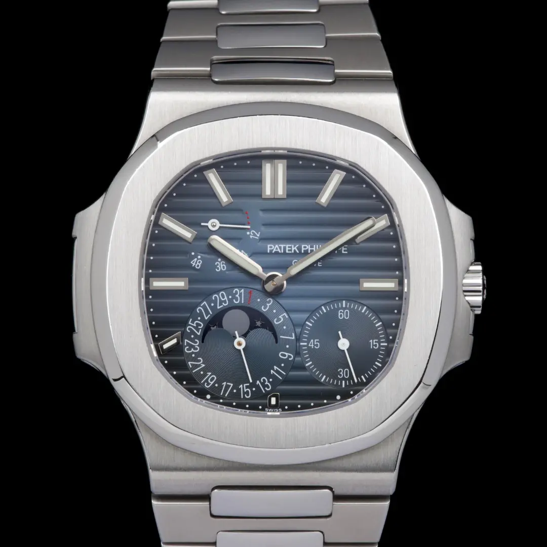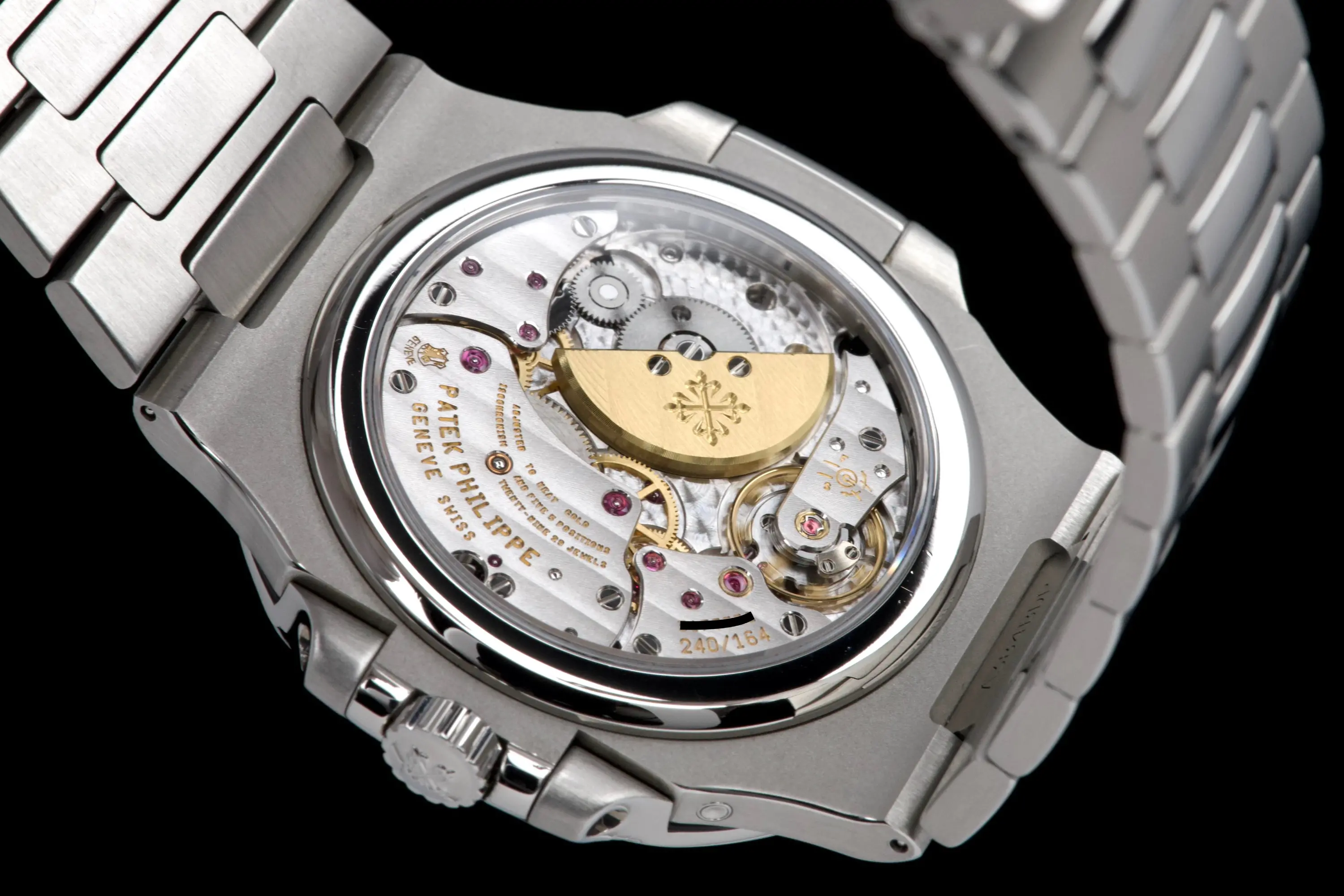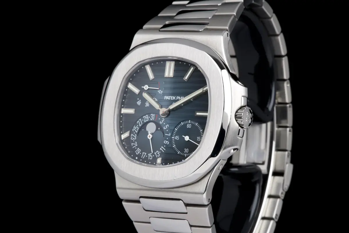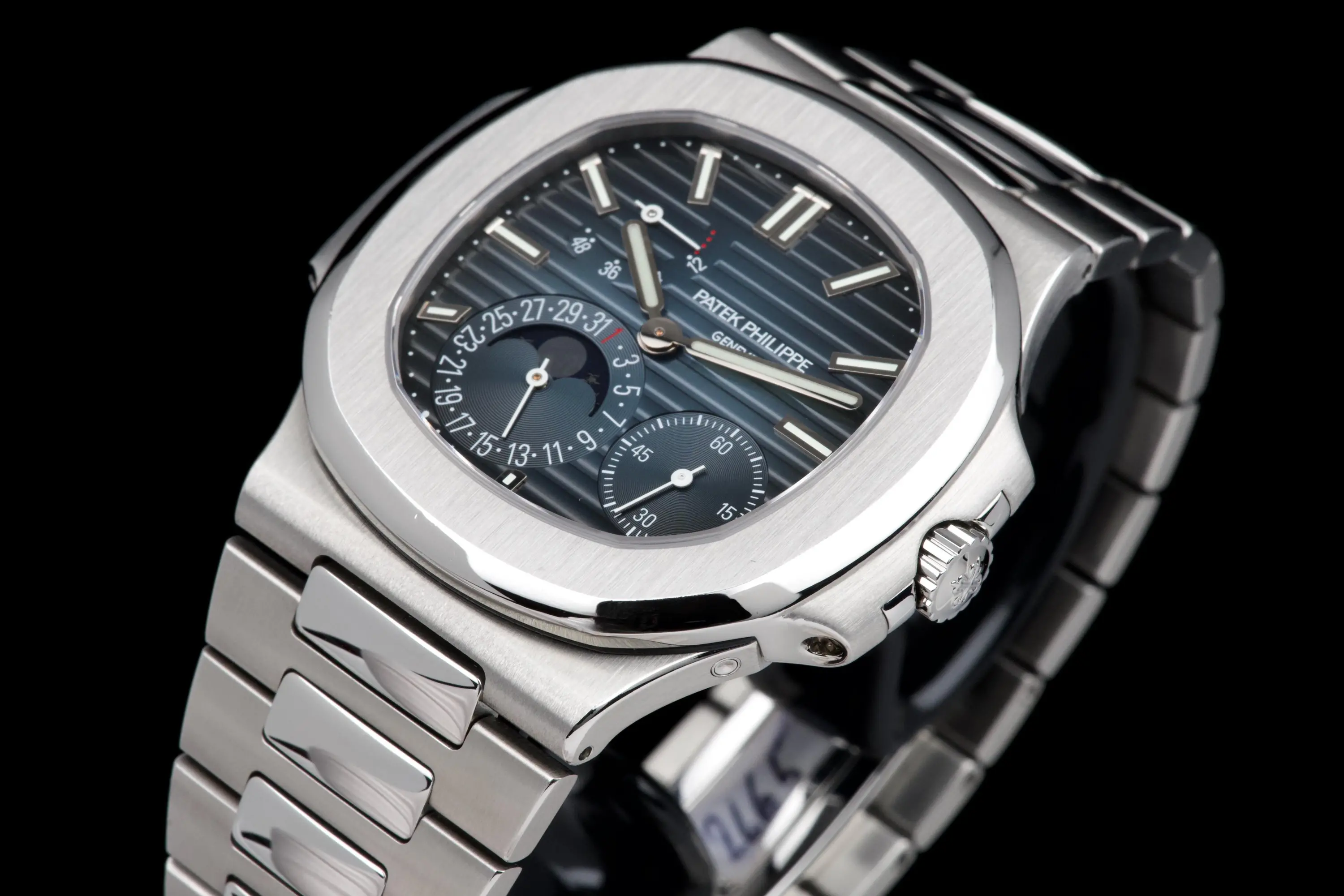 The present Patek Philippe Nautilus reference 5712/1A-001, dating to 2007, is an early example of the celebrated reference and part of the production bearing the prestigious Geneva Seal.