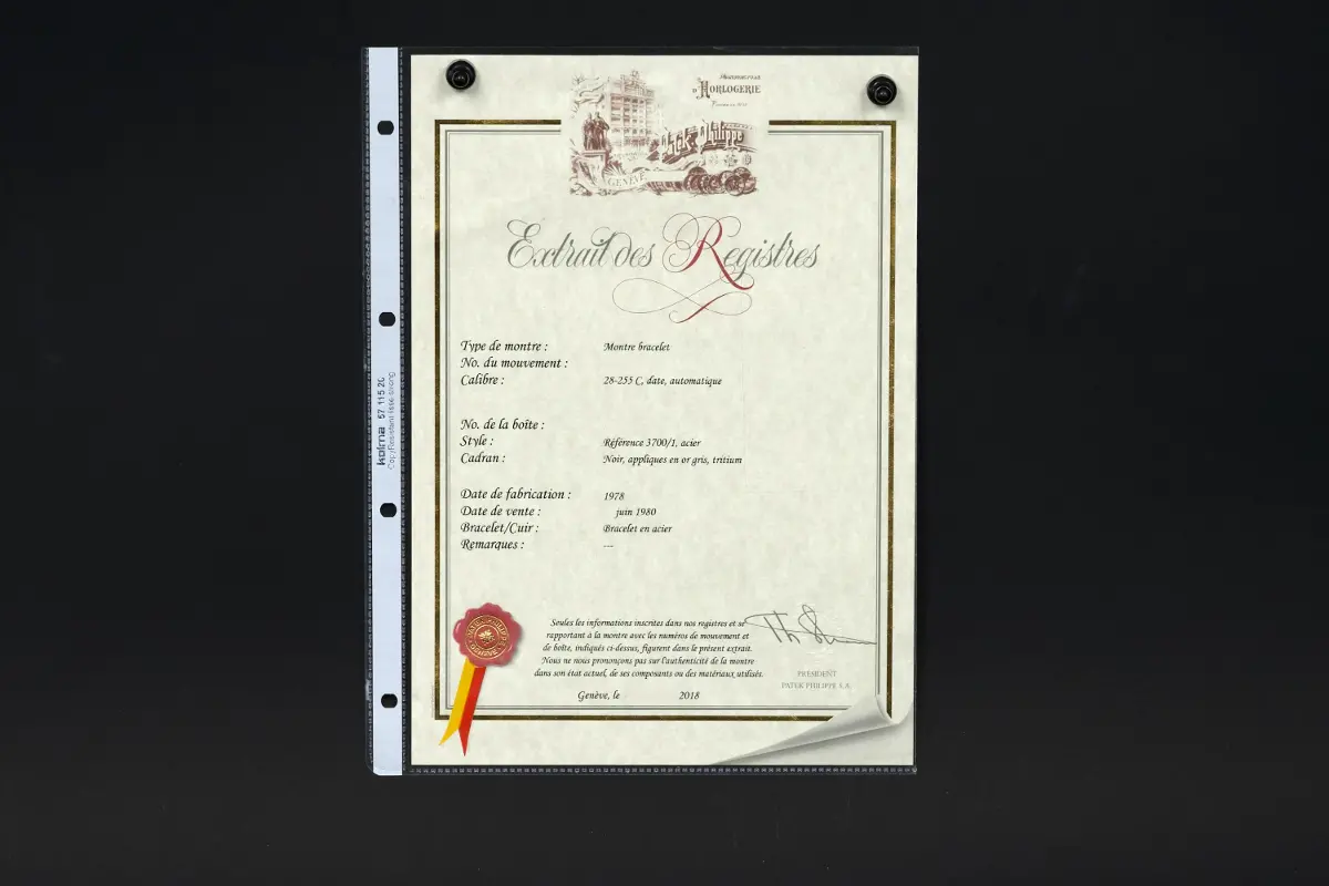 The watch is accompanied by an Extract from the Archives, confirming production in 1978 and original sale in June 1980