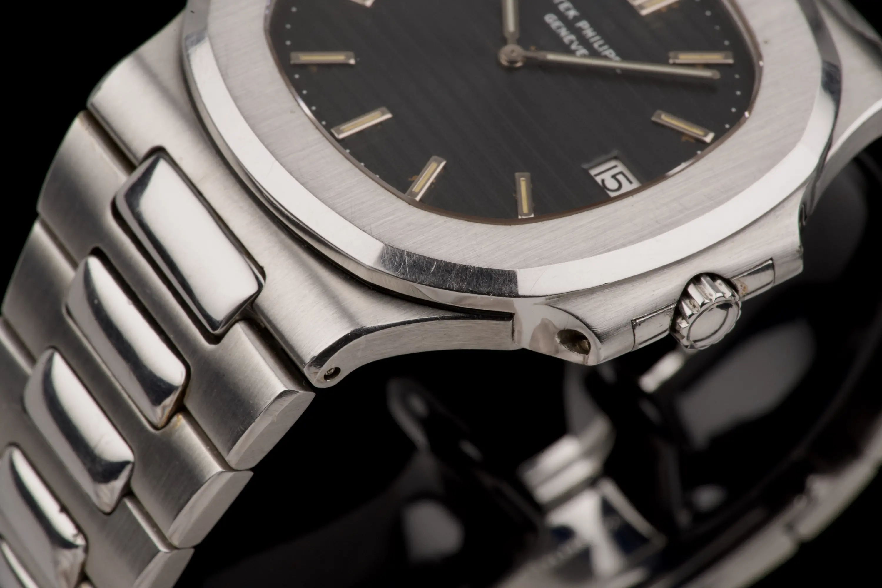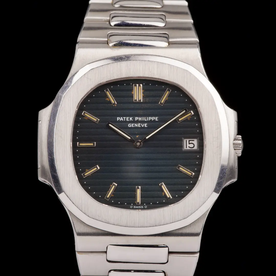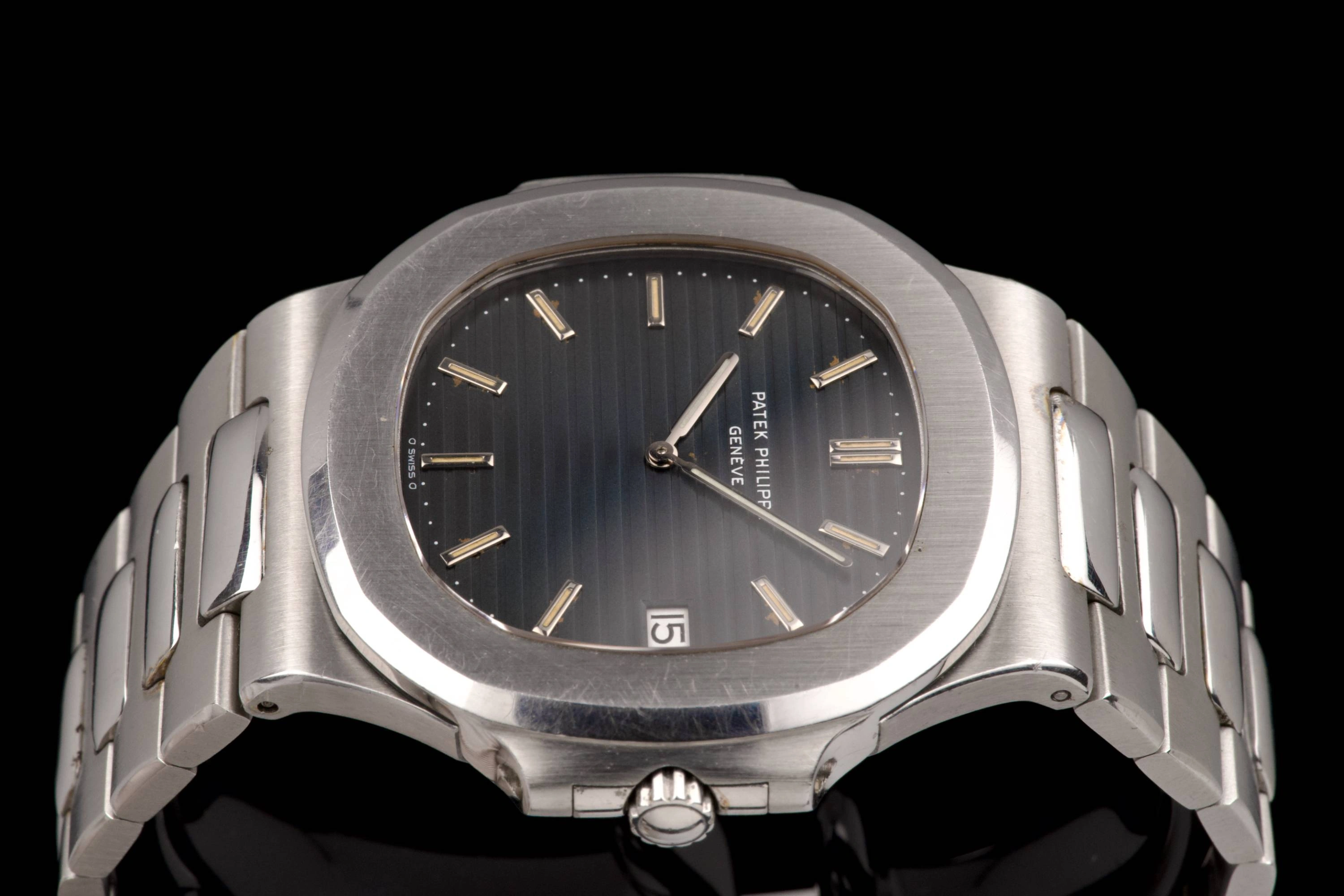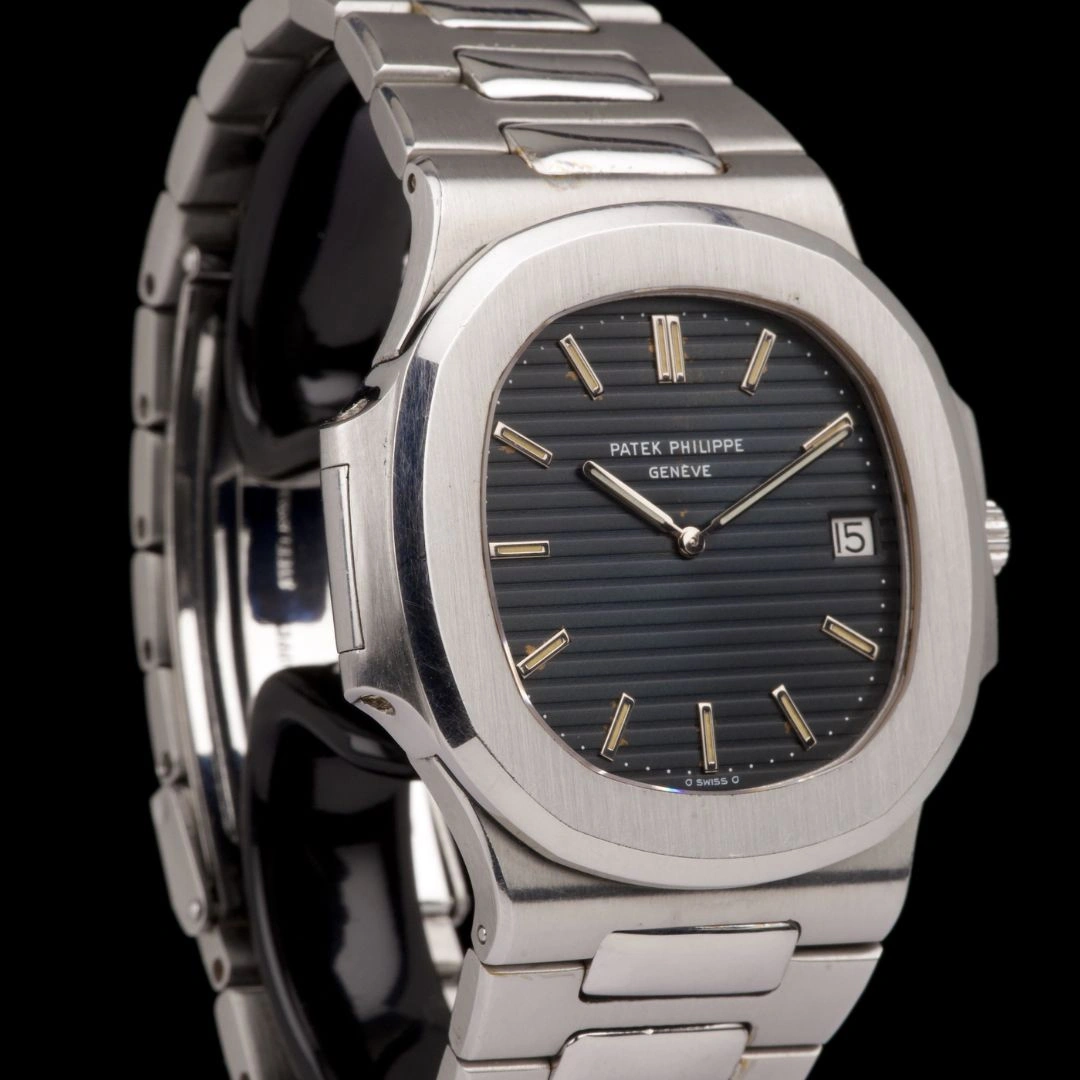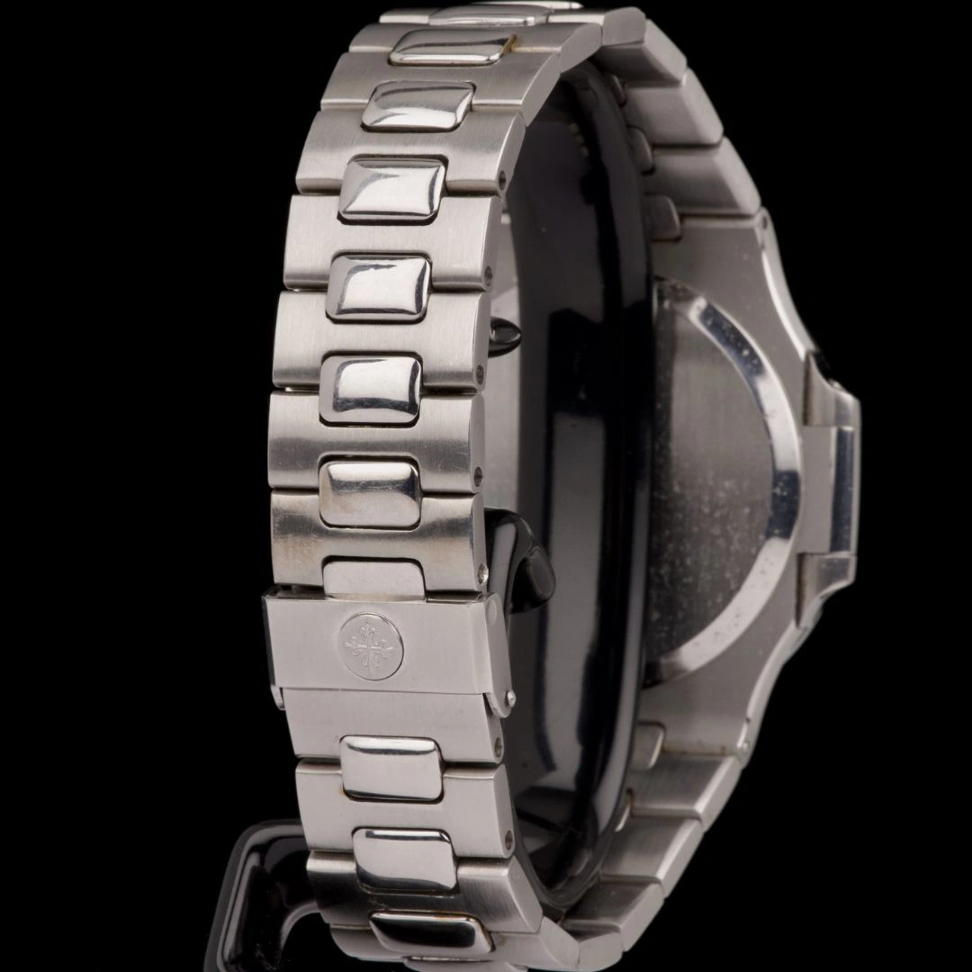 The Patek Philippe 3700/1A was the first Nautilus. It was designed by Gerald Genta and introduced at the Basel fair in 1976. At the time of its introduction, it was one of the most expensive stainless steel watches one could buy. The 3700/1 was available from 1976 to 1982. It was replaced by the 3700/11, which was available from 1982 to 1990. Self-winding movement with date, based on JLC 920 ebauche. A vintage watch is never fully water resistant any longer.