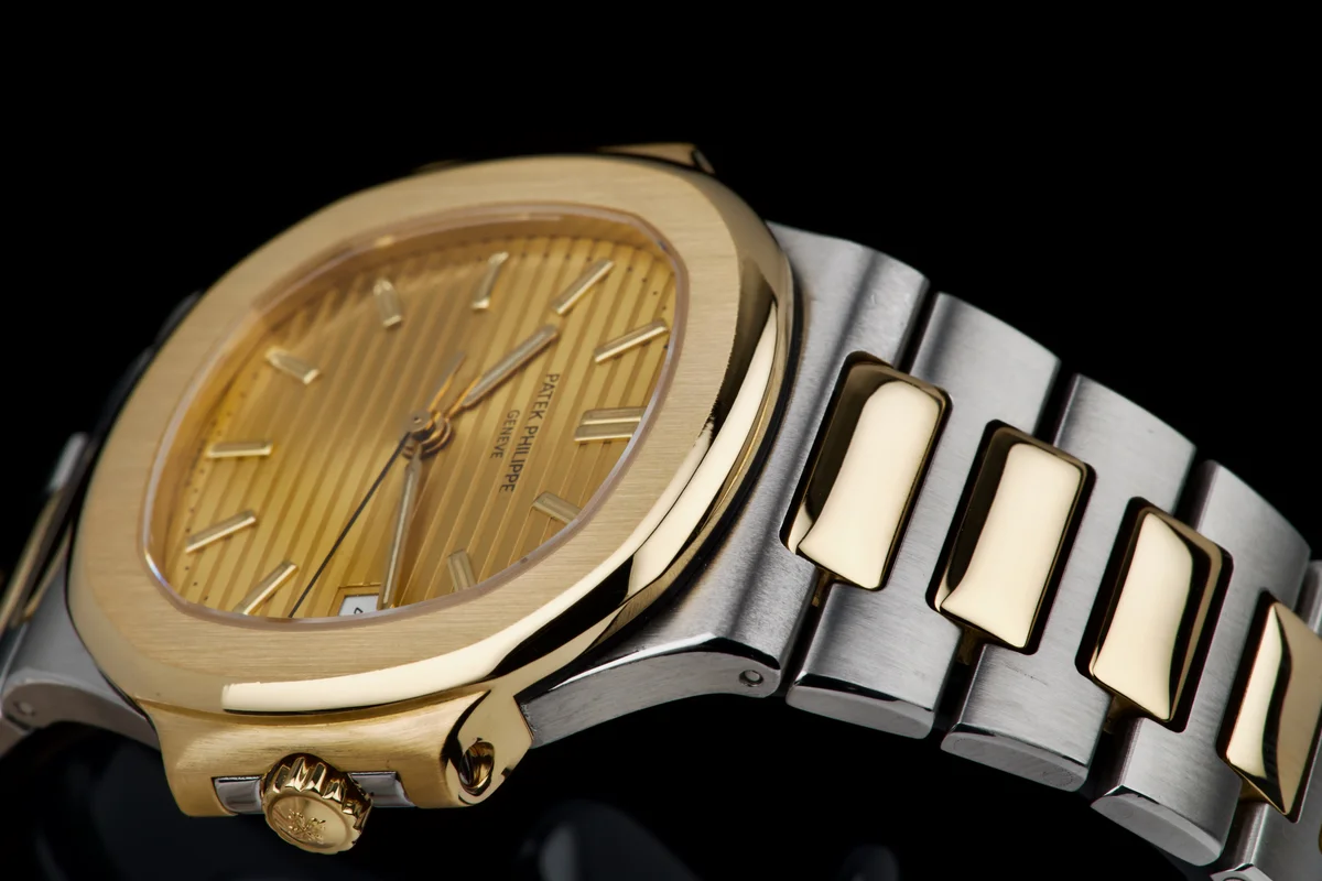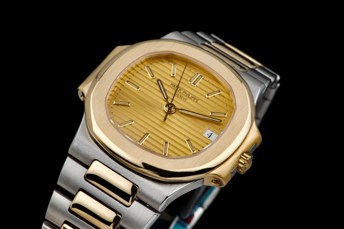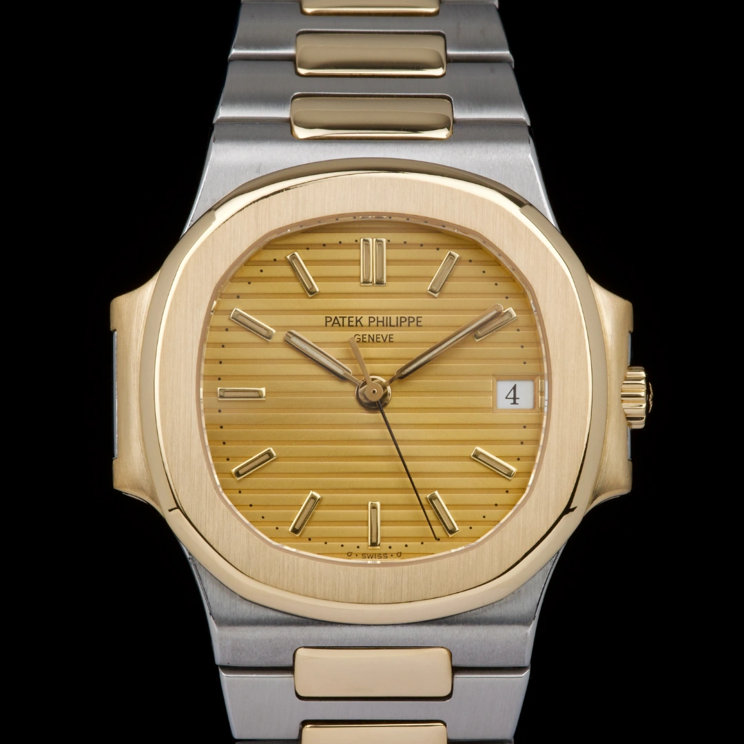 A beautiful and classic example of the two-tone Patek Philippe Nautilus reference 3800/1JA, featuring the sought-after gilt dial. This watch comes from its original owner and has just returned from a complete service and polish by Patek Philippe in 2025.