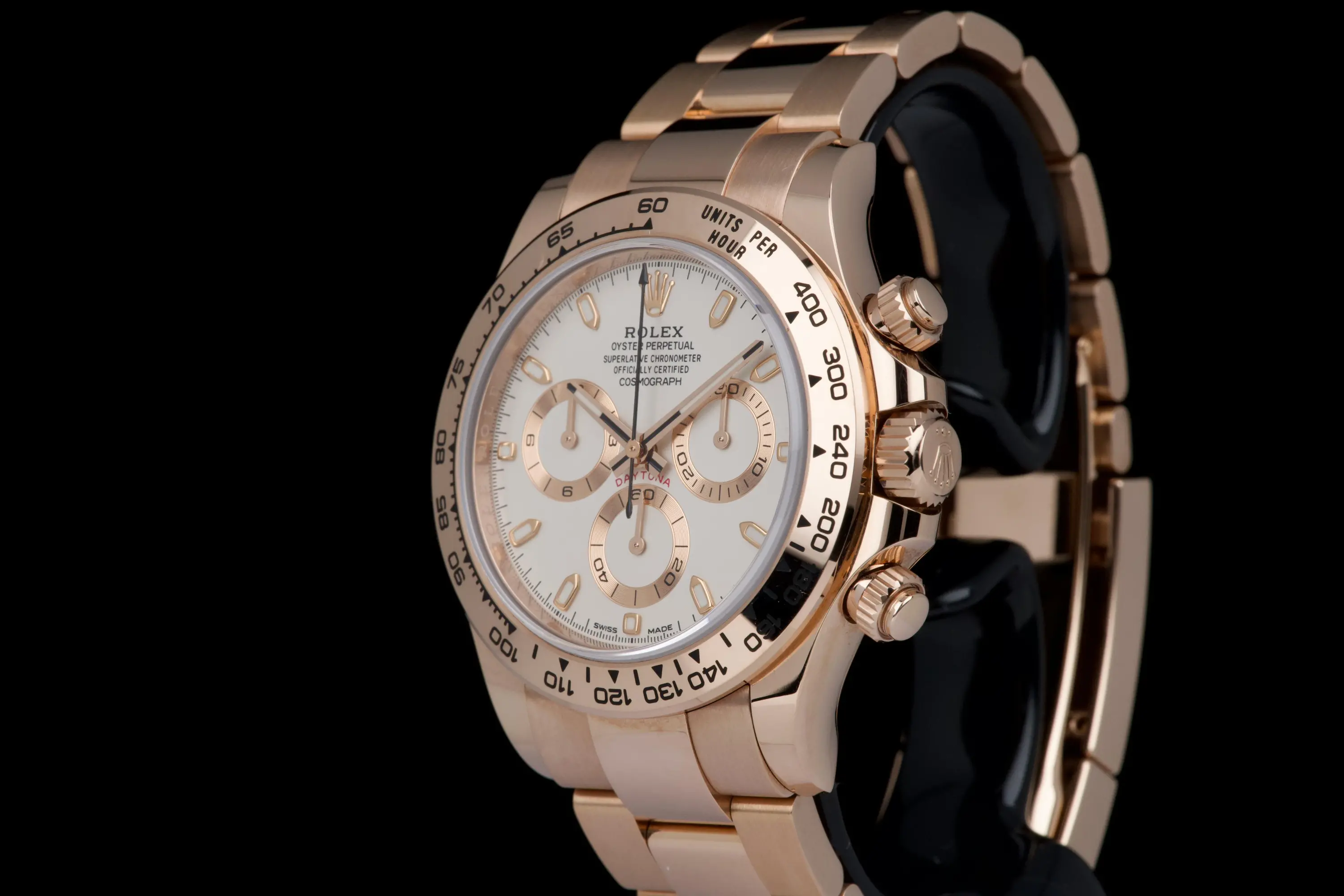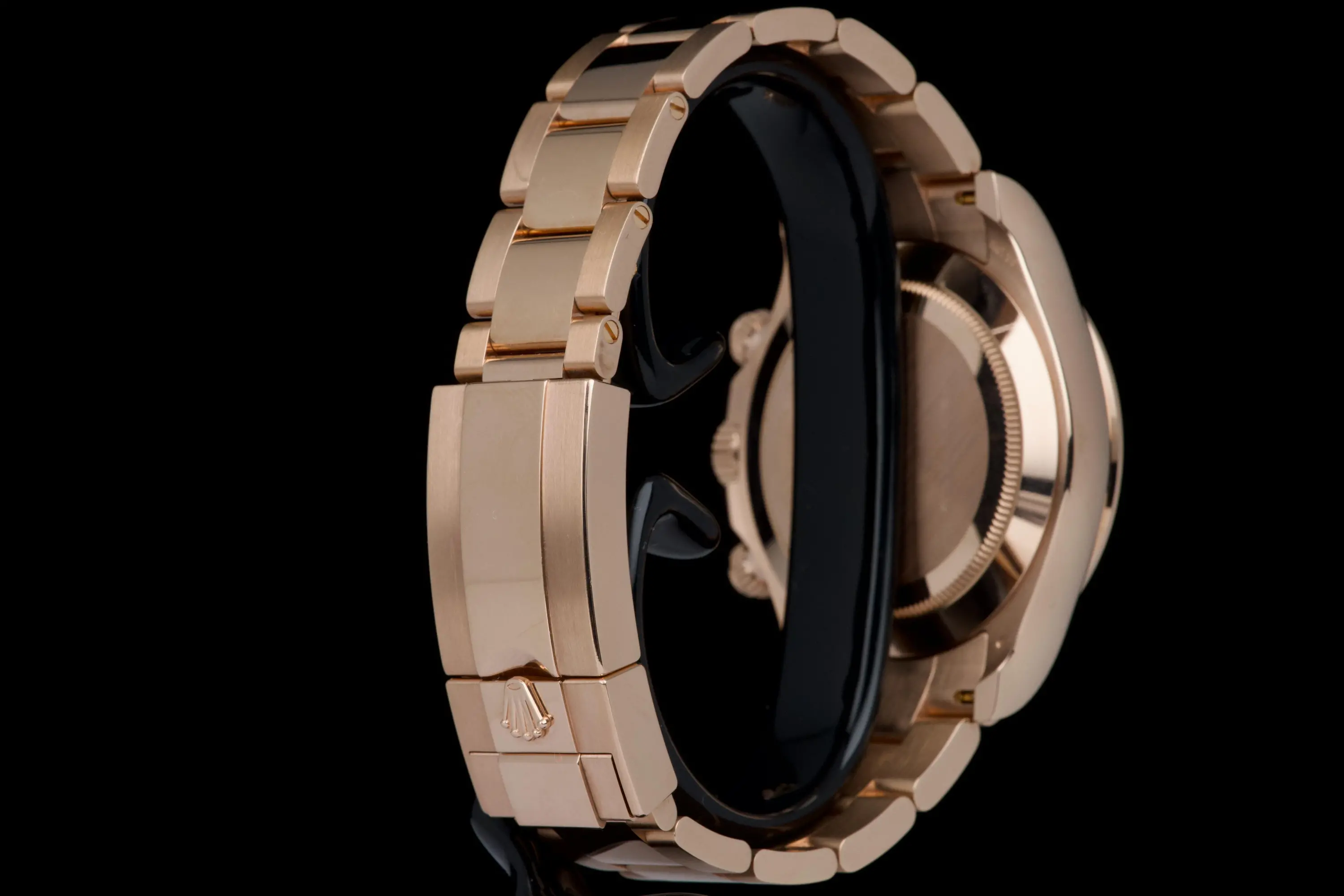 The Rolex Cosmograph Daytona reference 116505, crafted in 18k Everose gold, dates to circa 2022