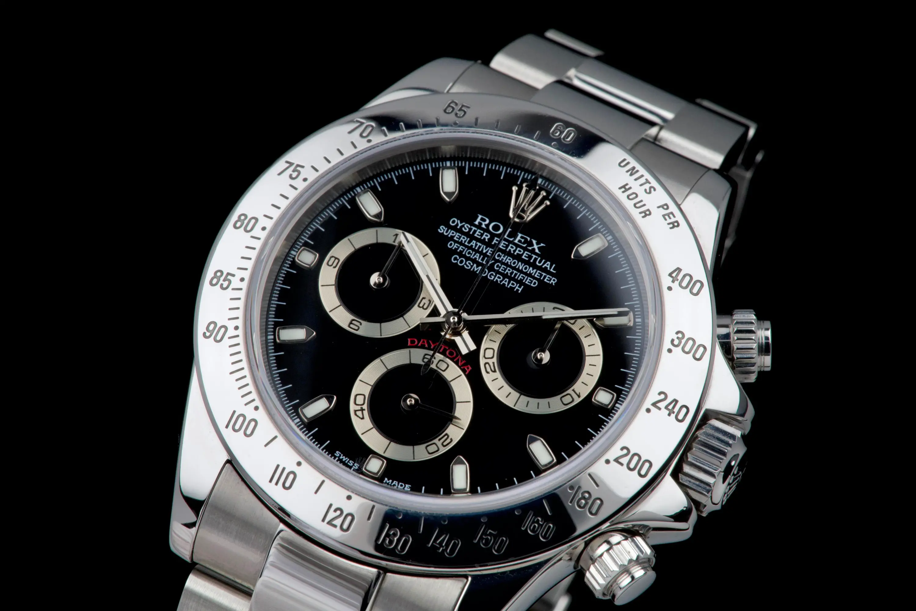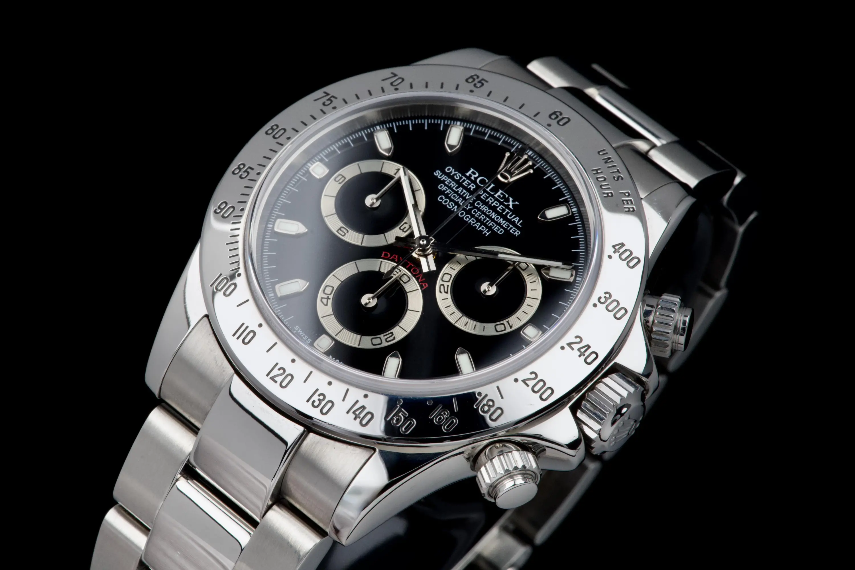 The present Rolex Cosmograph Daytona reference 116520, one of the most emblematic modern chronographs by Rolex, dates to circa 2003