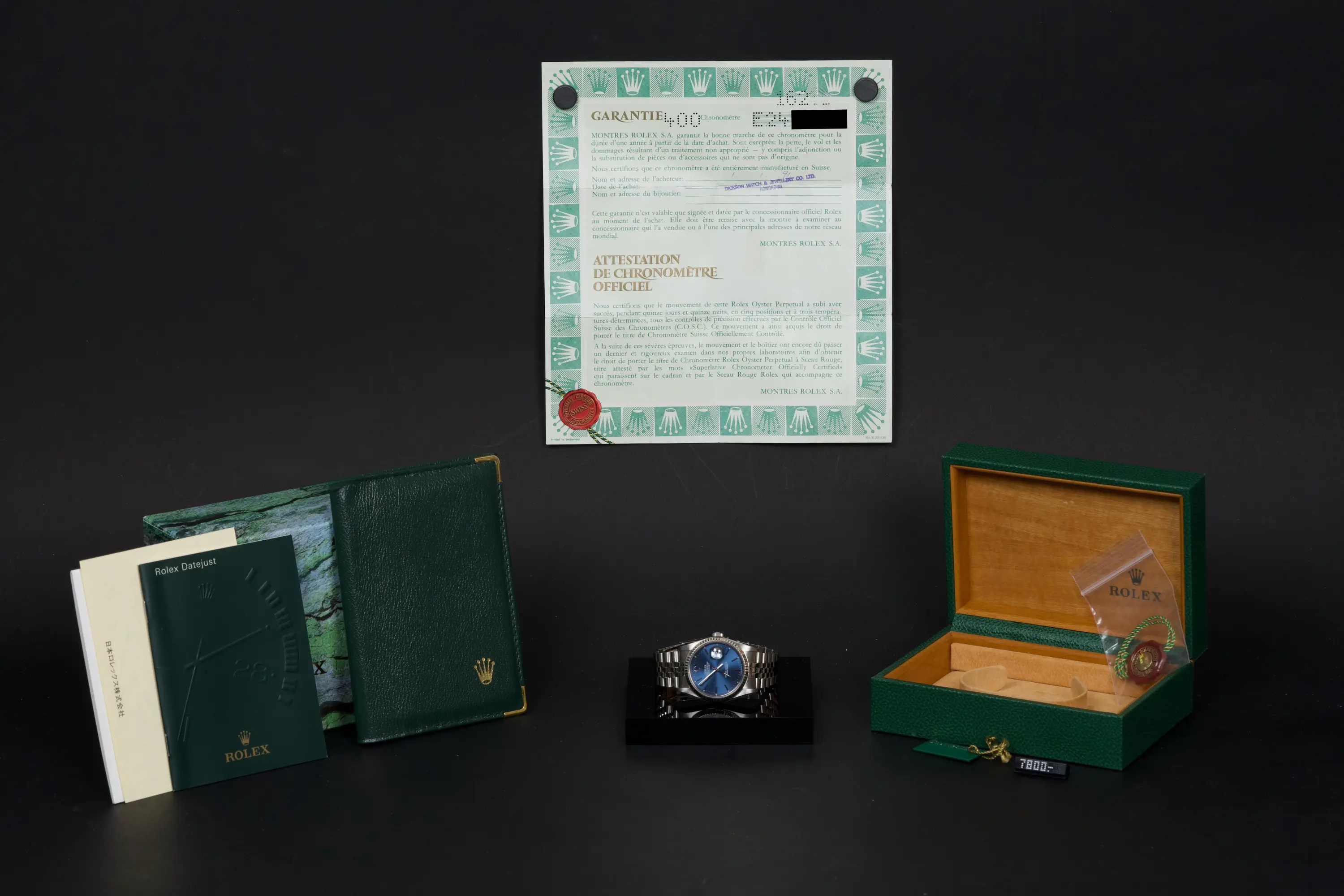 The Rolex Datejust 36 reference 16234, dating to circa 1990, is offered as a complete full set