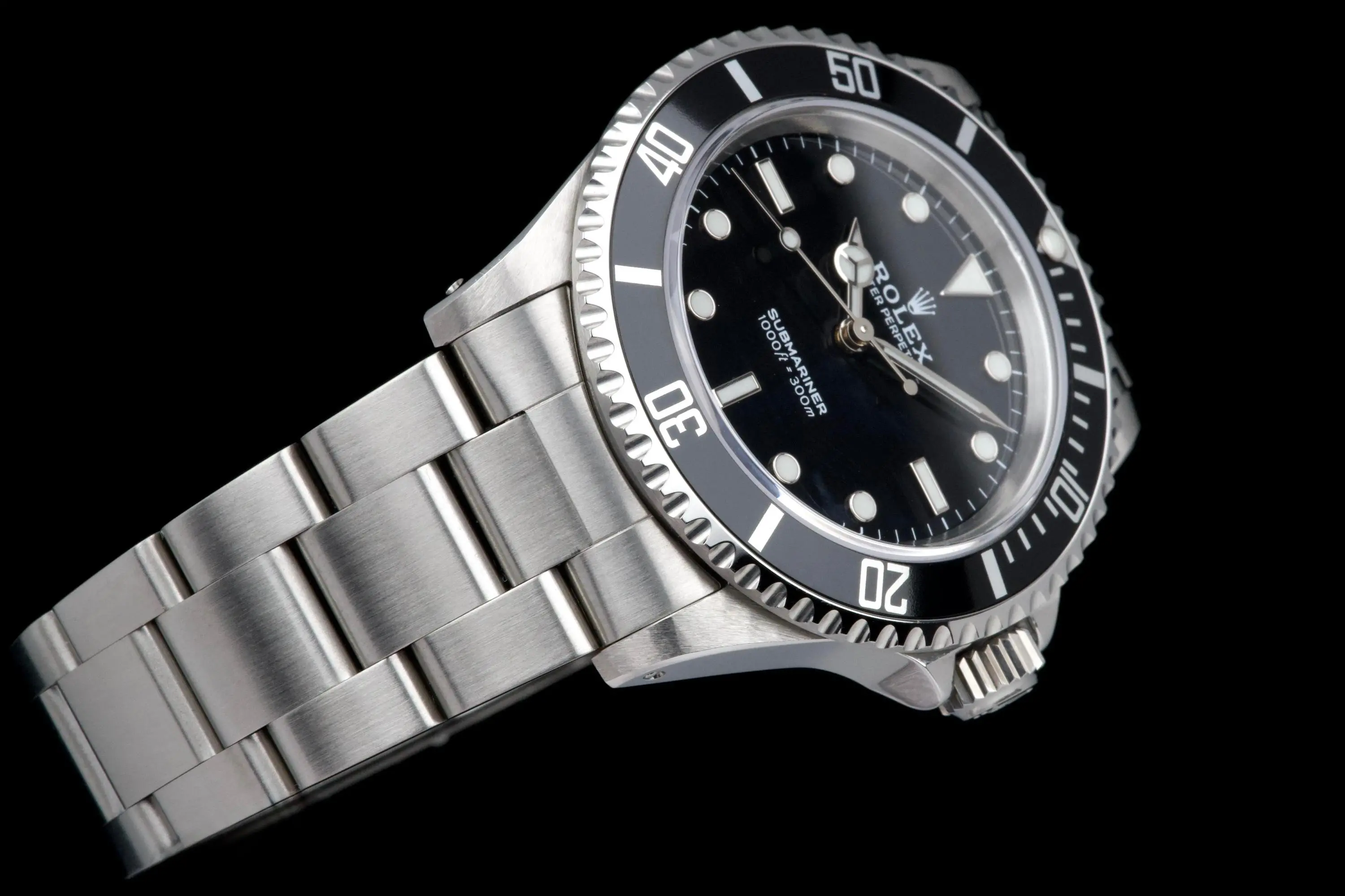 The Rolex Submariner 14060 was introduced in 1990 as the first no-date Submariner with a sapphire crystal. The version in this entry was introduced in 2007; it features a COSC-certified movement and text on the dial reflecting this. It was discontinued in 2012 in favor of the Submariner 114060 and as such it was the last Submariner available featuring the classic case style.