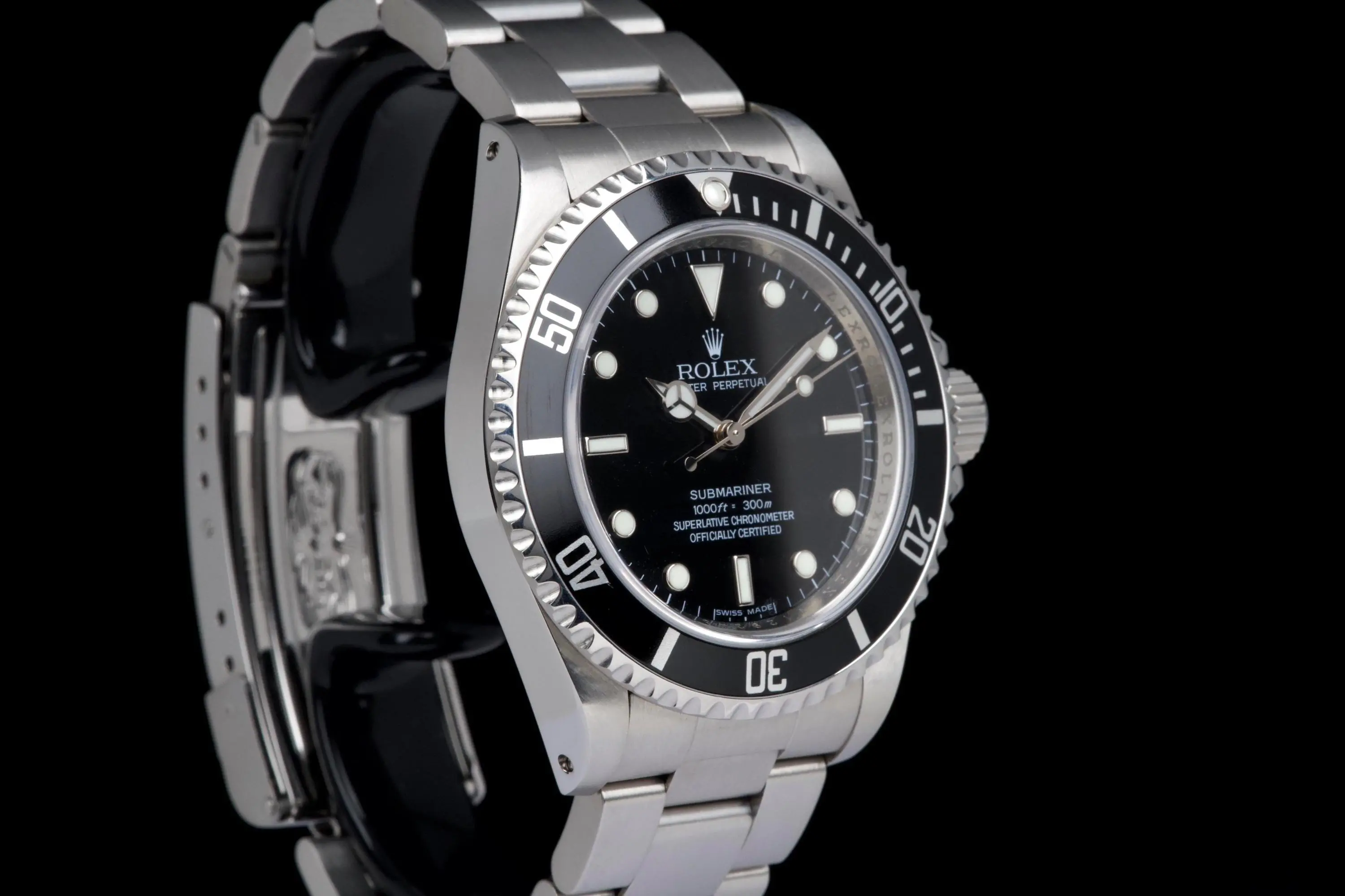 The Rolex Submariner 14060 was introduced in 1990 as the first no-date Submariner with a sapphire crystal. The version in this entry was introduced in 2007; it features a COSC-certified movement and text on the dial reflecting this. It was discontinued in 2012 in favor of the Submariner 114060 and as such it was the last Submariner available featuring the classic case style.