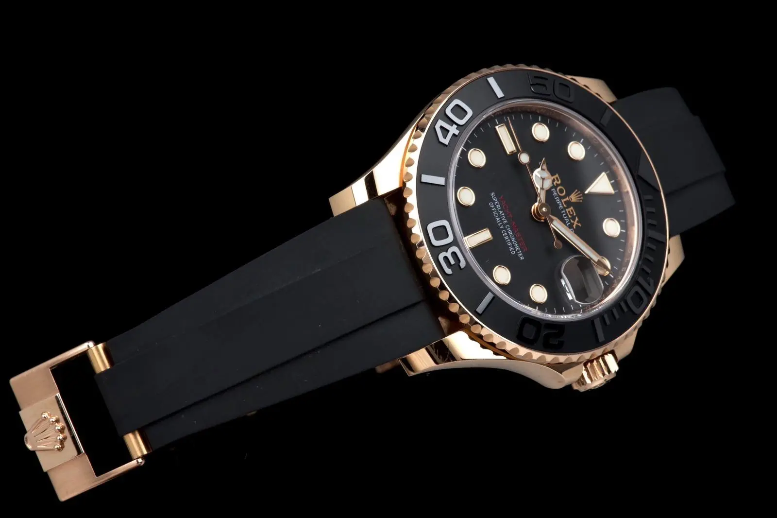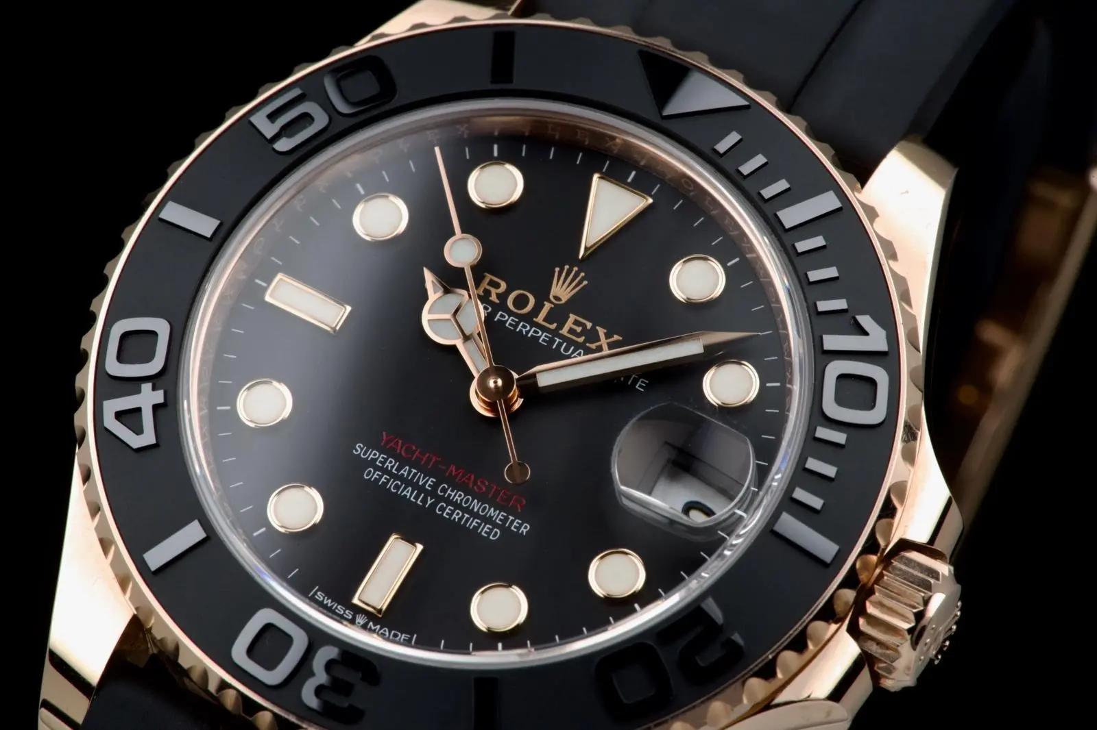The present Rolex Yacht-Master, crafted in 18k Everose gold, dates to circa 2021 and is offered here as a complete full set.