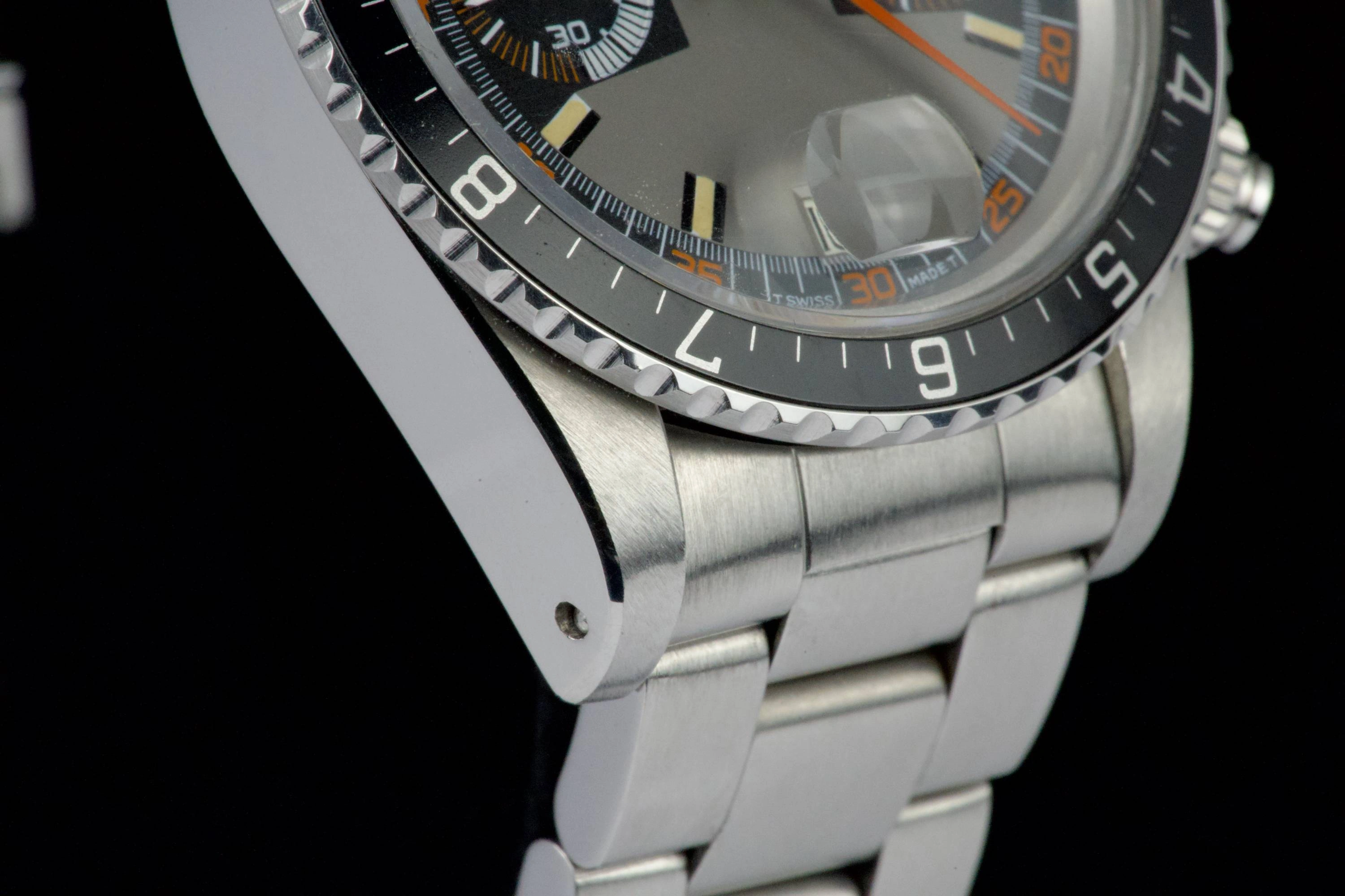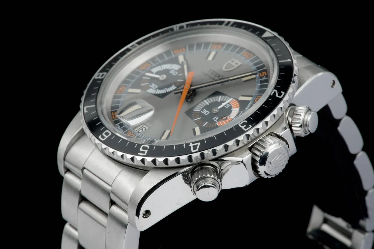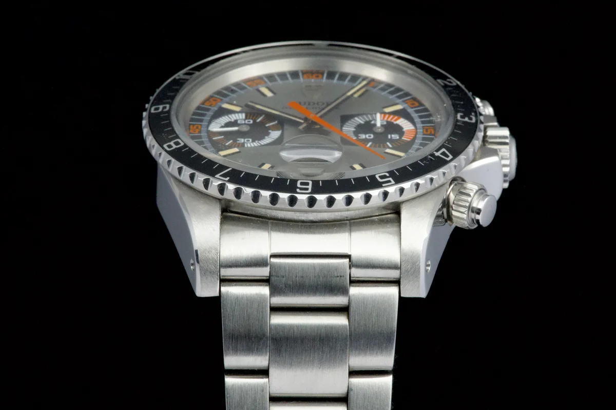 The Tudor Chronograph Oysterdate with reference 7169 maintains the same features as its sister references 7100, however, the only difference that can be found is in the bezel which takes as a reference to the Tudor Oysterdate Chronograph 7033, which was never commercialized and remained in prototype version, and which had a rotating bezel. With respect to other aspects such as color, dial and use of the Valjoux caliber 234, are maintained.