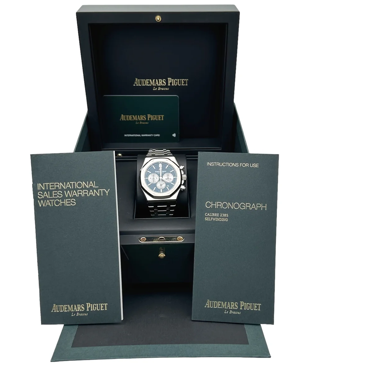 A fine and beautiful Audemars Piguet Royal Oak Chronograph in stainless steel with its blue dial