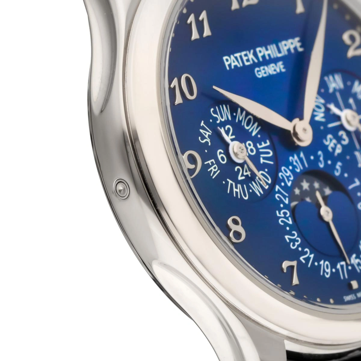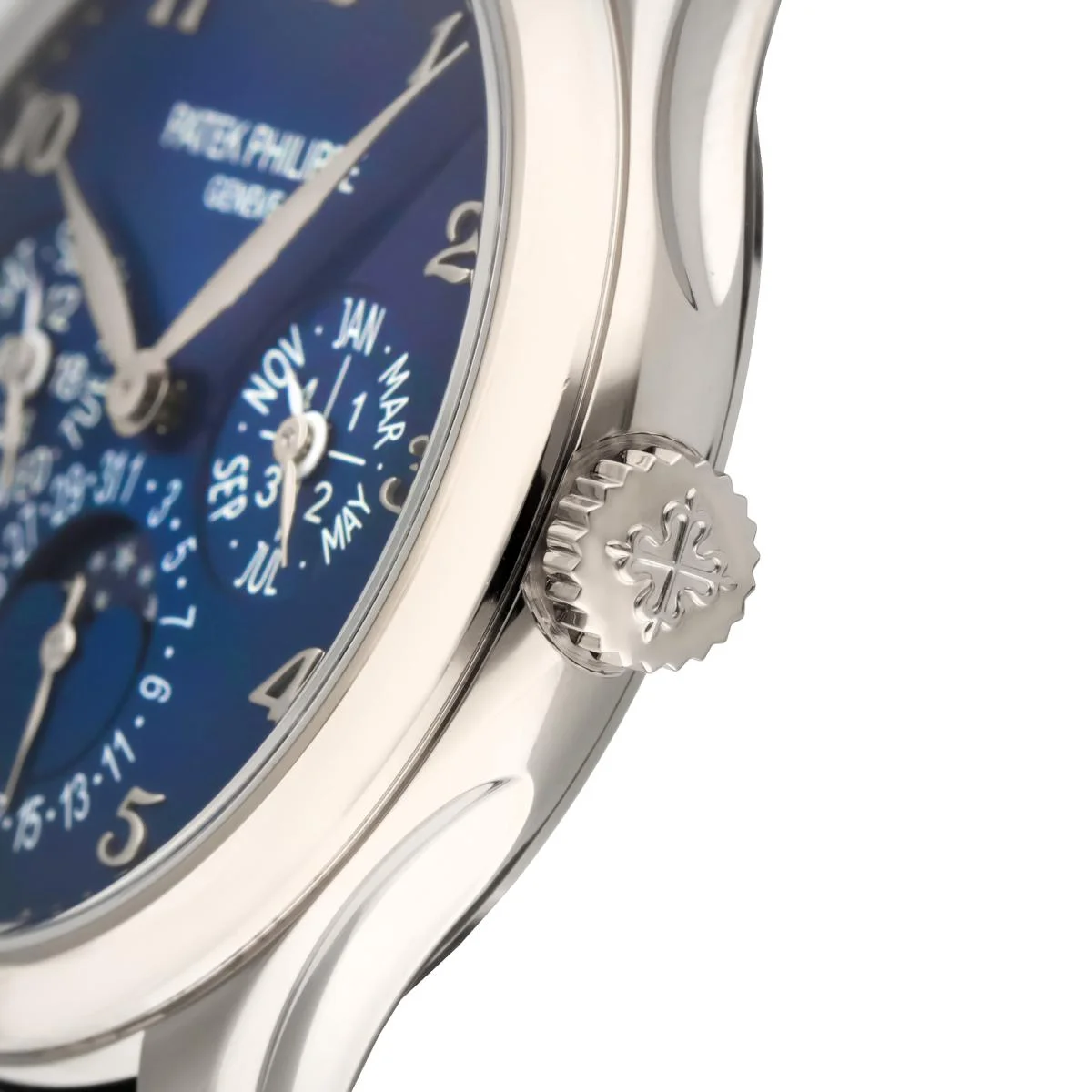 The Patek Philippe Perpetual Calendar Ref. 5327G-001 was introduced at BaselWorld 2016 in white, yellow, and rose gold. It features a case of 39mm - somewhat larger than for example the 37.2mm of the 5140. All three initial models feature Breguet-style numerals and feuille hands.