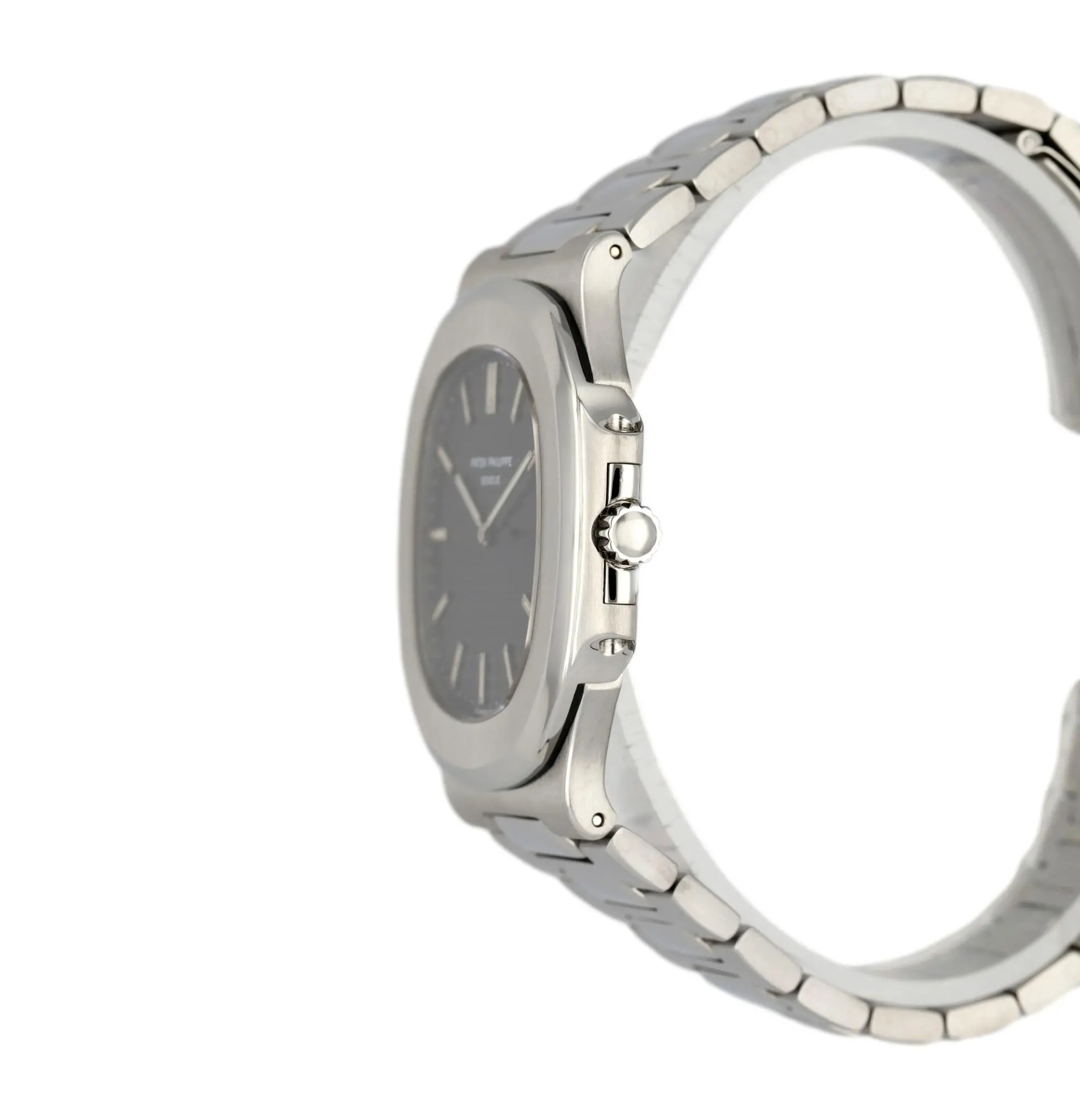 The Patek Philippe 3700/1A was the first Nautilus. It was designed by Gerald Genta and introduced at the Basel fair in 1976. At the time of its introduction, it was one of the most expensive stainless steel watches one could buy. The 3700/1 was available from 1976 to 1982. It was replaced by the 3700/11, which was available from 1982 to 1990. Self-winding movement with date, based on JLC 920 ebauche. A vintage watch is never fully water resistant any longer.