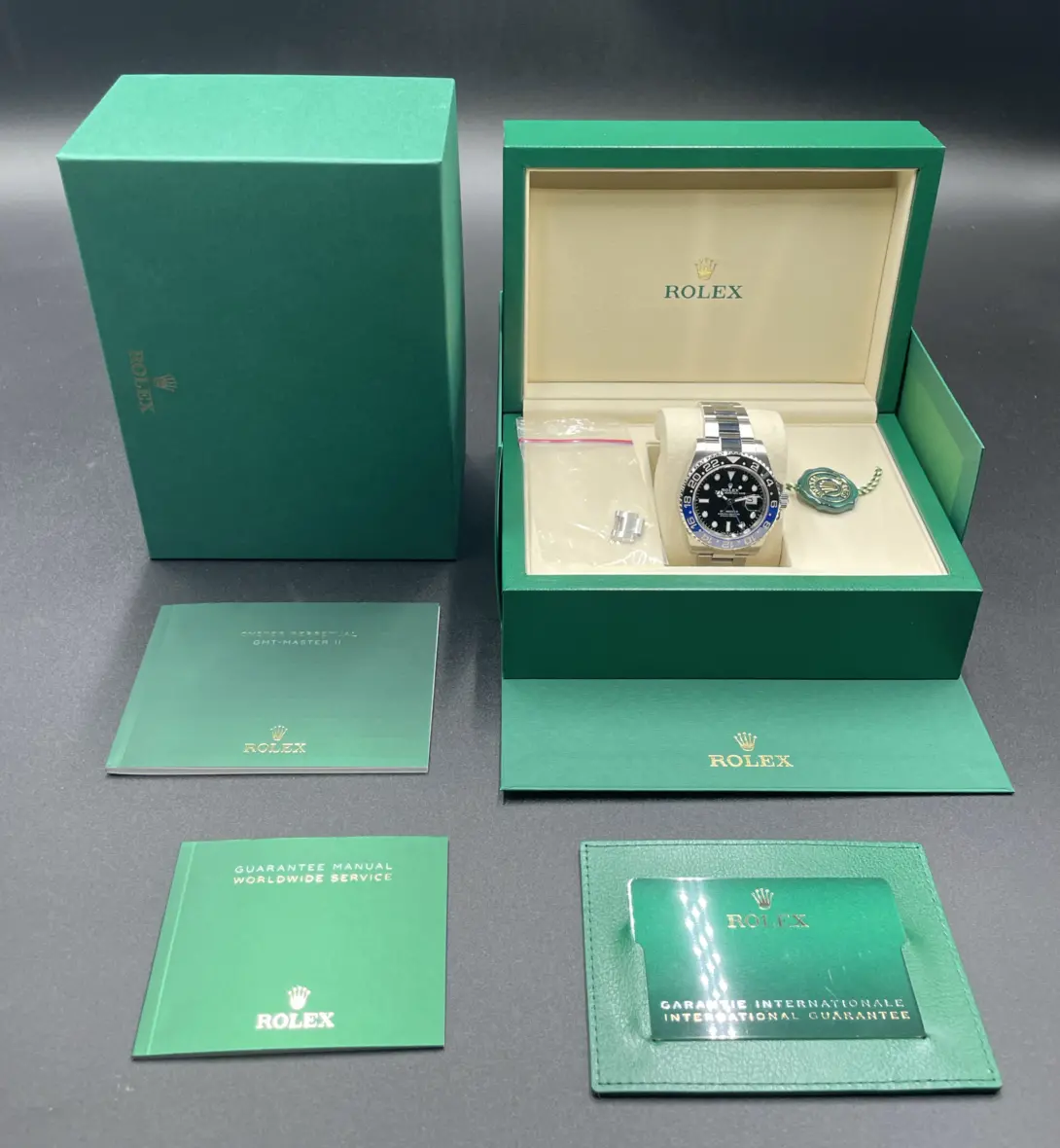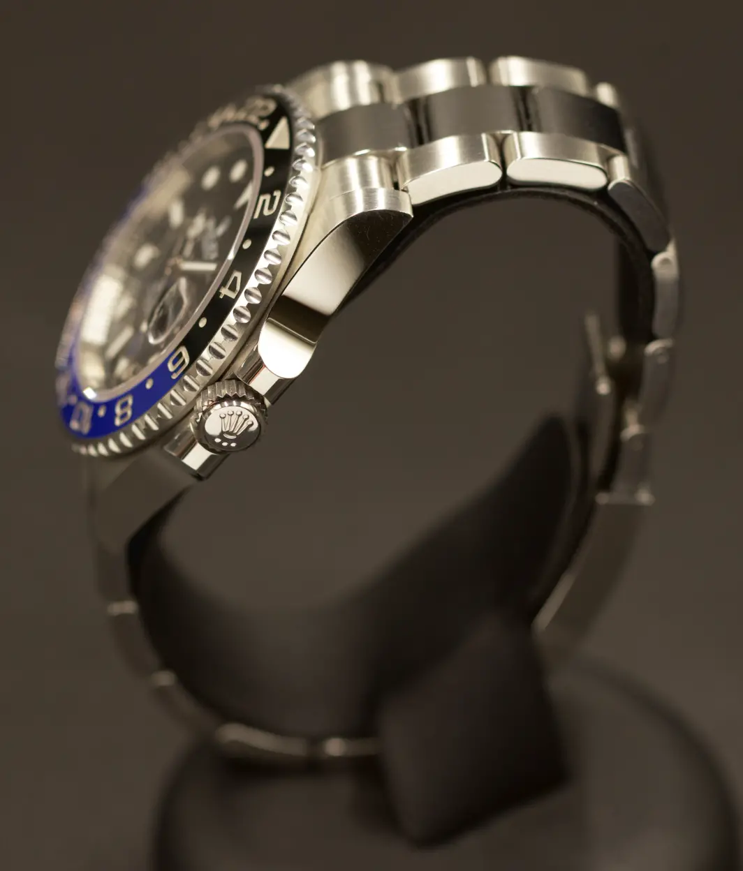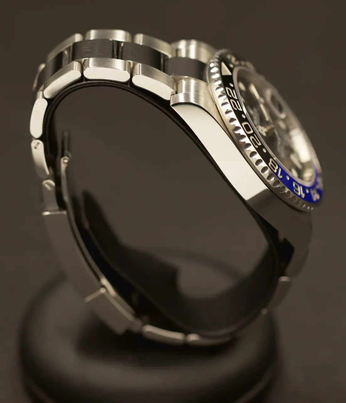 The Rolex GMT-Master 126710 was introduced at BaselWorld 2018 as the 'Pepsi', while the version shown here was added to the collection in 2019. Reference 126710BLNR-0003 features the 'Batman' bezel in black and blue. It is fitted with a Oyster-type bracelet. This configuration was added to the collection in 2021.