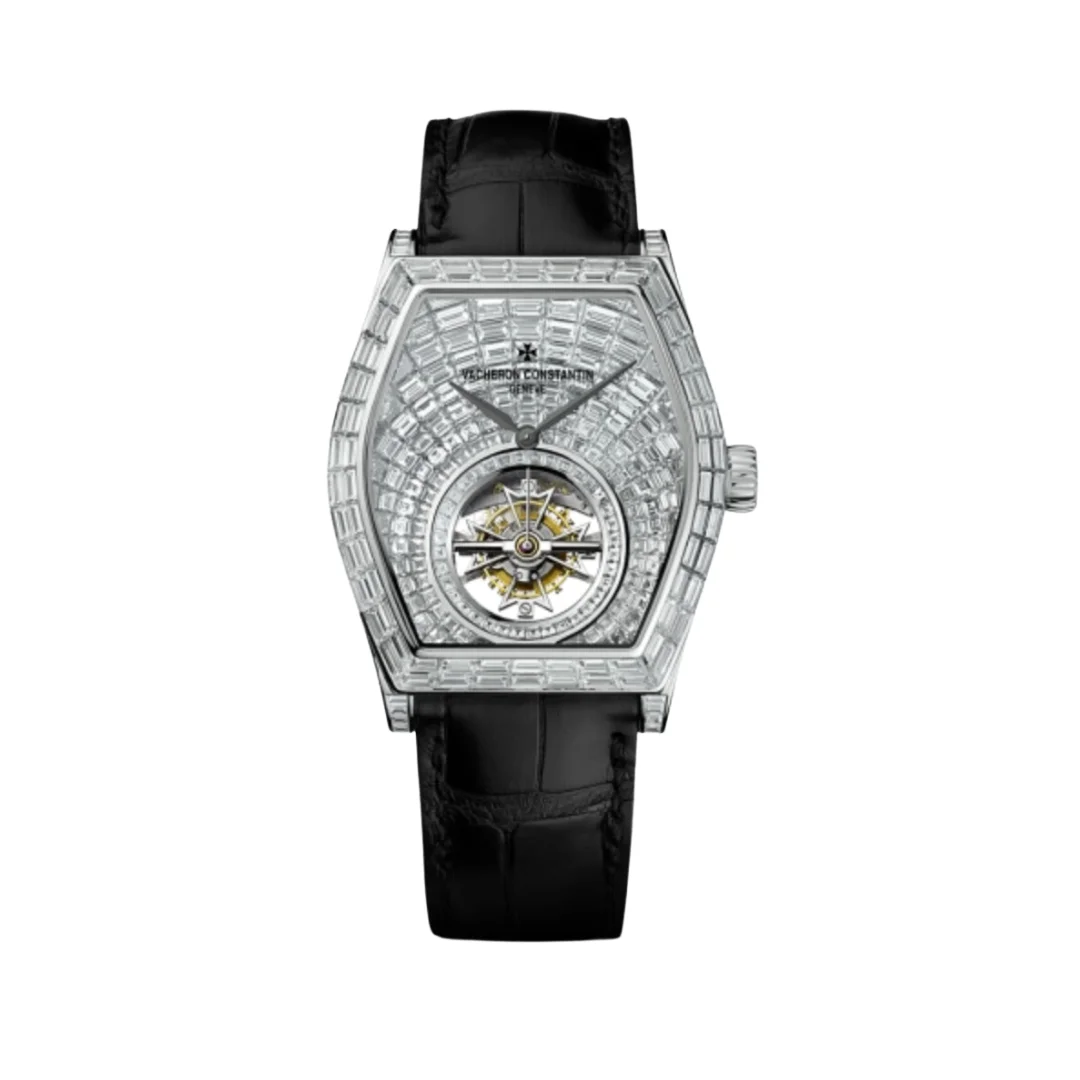 First introduced in 2013 in anticipation of SIHH 2014, the Malte Tourbillon Haute Joaillerie is a diamond-studded version of Vacheron Constantin's Malte Tourbillon. This exceptional piece is a vibrant dedication to the Métiers d’Art, which here border on the sublime. With the invisible settings all entirely hand-crafted, it is dressed in 418 baguette diamonds (totalling approximately 19.6 carats), creating a supreme illumination of time.