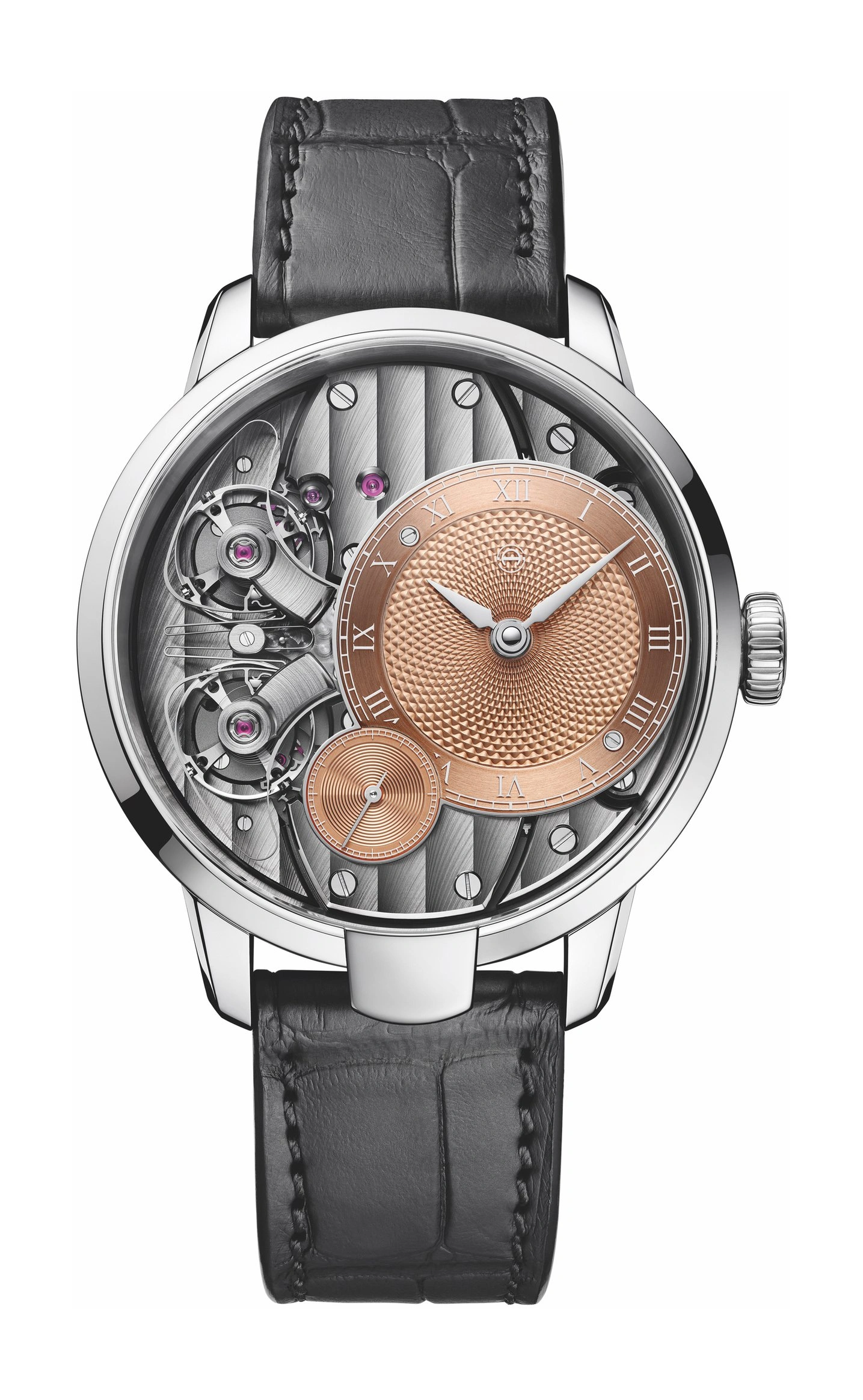 Our journey began in 2009 with the opening of our fully integrated Manufacture in Biel. Under the leadership of watch enthusiast Serge Michel and master watchmaker Claude Greisler, our goal was clear: to create innovative, high-quality timepieces in-house, rooted in Swiss-German watchmaking tradition yet elevated through our self-developed movement concepts. From day one, we’ve embraced an openwork design approach with our watches, a design-aesthetic that we call “transparent mechanics”. Why? Because we want to highlight the labour, precision, and dedication poured into each piece—a true reflection of our timepiece-manufacturing philosophy: the science of movement. This scientific ethos has shaped our watches and formed the foundation of our distinct design language, which is evident across all our product lines. Each watch we create is hand-crafted, with nearly all movement components made in-house.