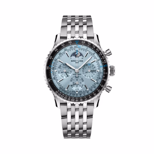 The Breitling Navitimer B19 PB1920251C1A1 debuted in 2025. This Navitimer has a stainless steel case with platinum bezel,s which houses T201 - a self-winding movement with chronograph and perpetual calendar. The dial is ice Blue. For our 140th anniversary, we introduced the Caliber B19—Breitling’s first exclusive perpetual calendar chronograph movement. The milestone achievement now powers this special-edition Navitimer, a watch with its own legendary history.