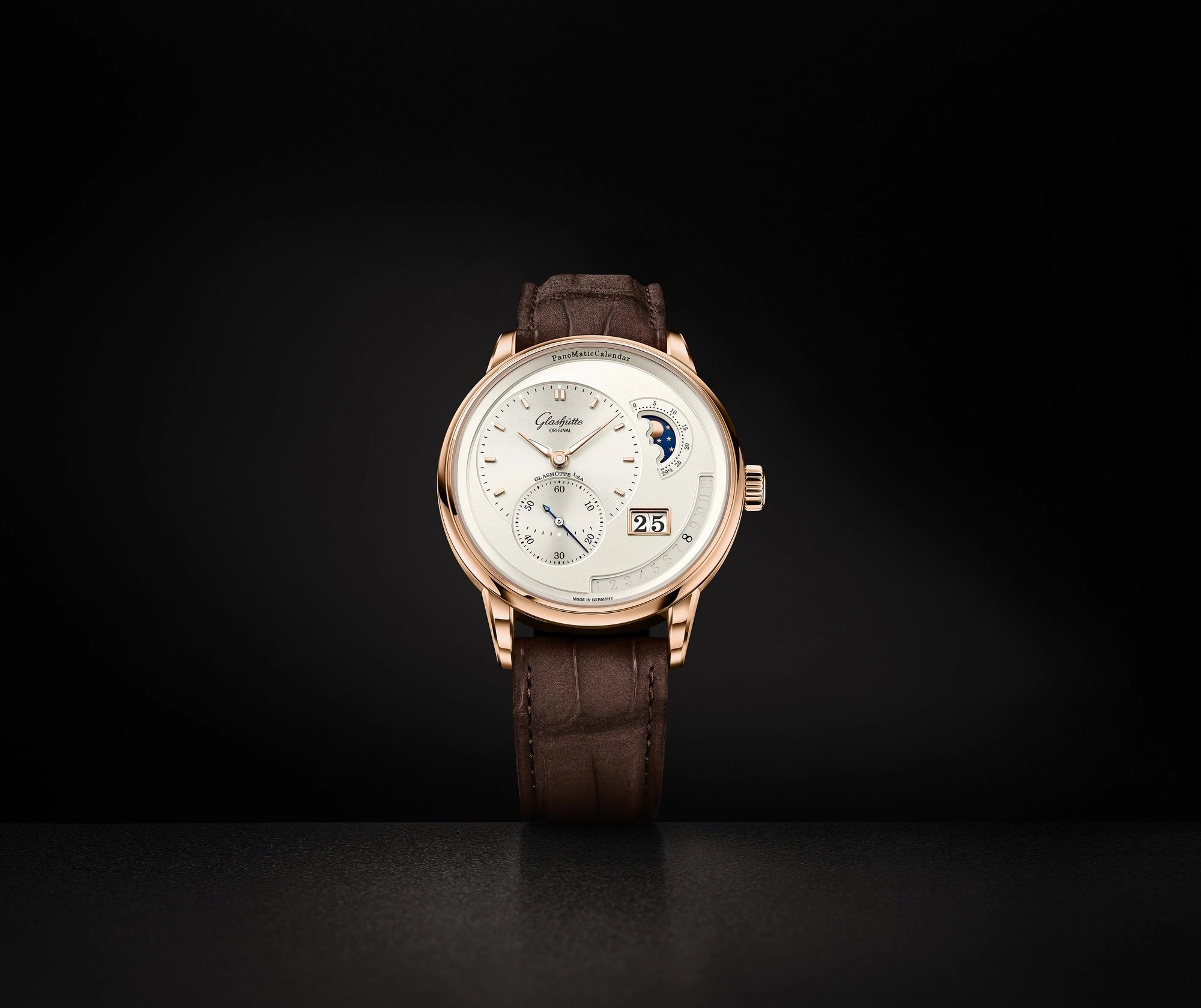 The Glashuette Original Panomatic Calendar debuted in 2022, being the brand's first watch to be fitted with a movement with annual calendar. Reference 1-92-09-02-05-62 has a Red Gold case and a Silver dial.