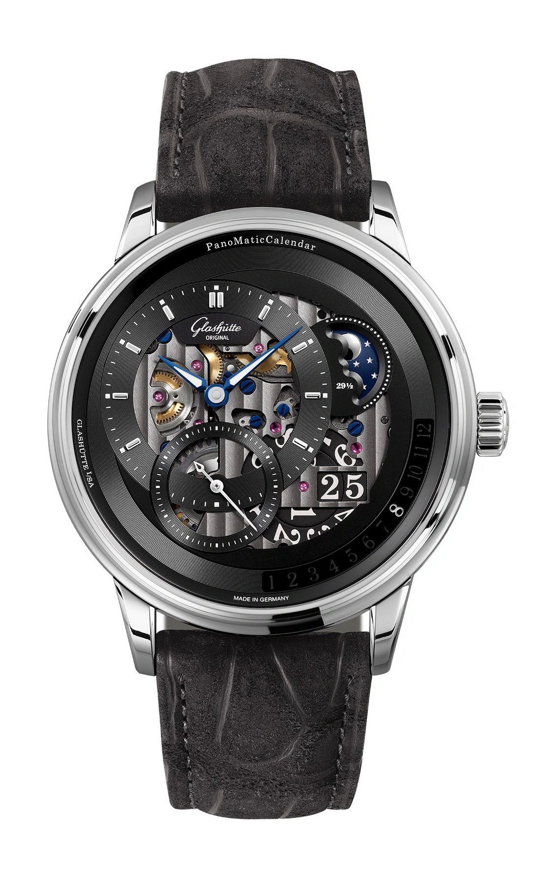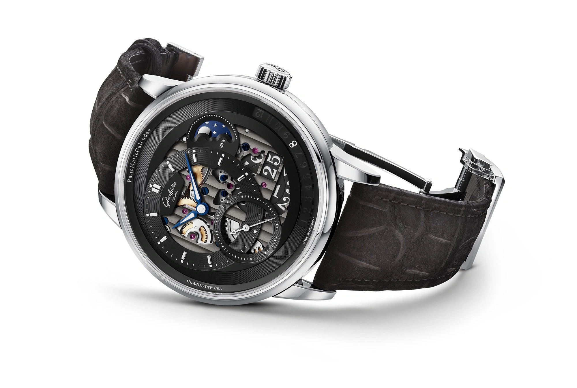 Glashütte Original upholds the values of authentic manufactory production and can look back on an uninterrupted history that began in 1845. Located in the Saxon town of Glashütte, the manufactory brings traditional craftsmanship and innovative technologies together under one roof. The tradition-rich brand produces up to 95 % of all movement components as well as the filigree dials in-house and represents the highest levels of German watchmaking art.