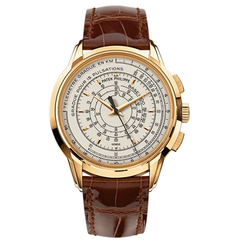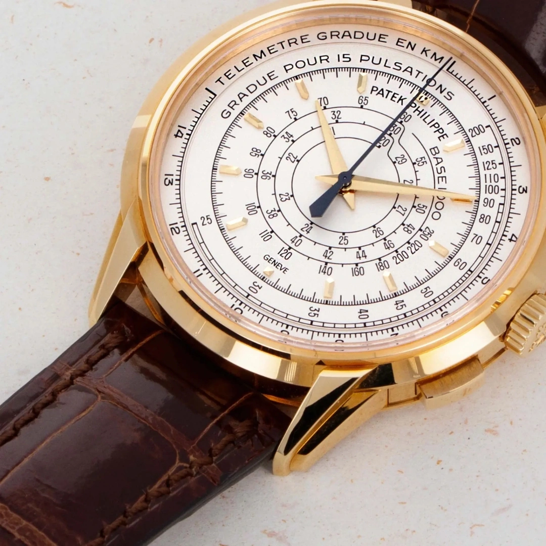 Part of the 175th Anniversary collection of Patek Philippe, the 5975 features a CH 28-520 stripped down to its bare essentials - nothing but the hours, minutes and seconds counter remain. The dial is adorned with a telemeter, pulsometer and tachymeter. The 5975J-001 features a yellow gold case and an opaline silver dial. It is limited to 400 pieces.