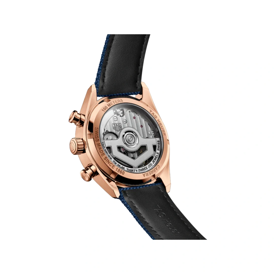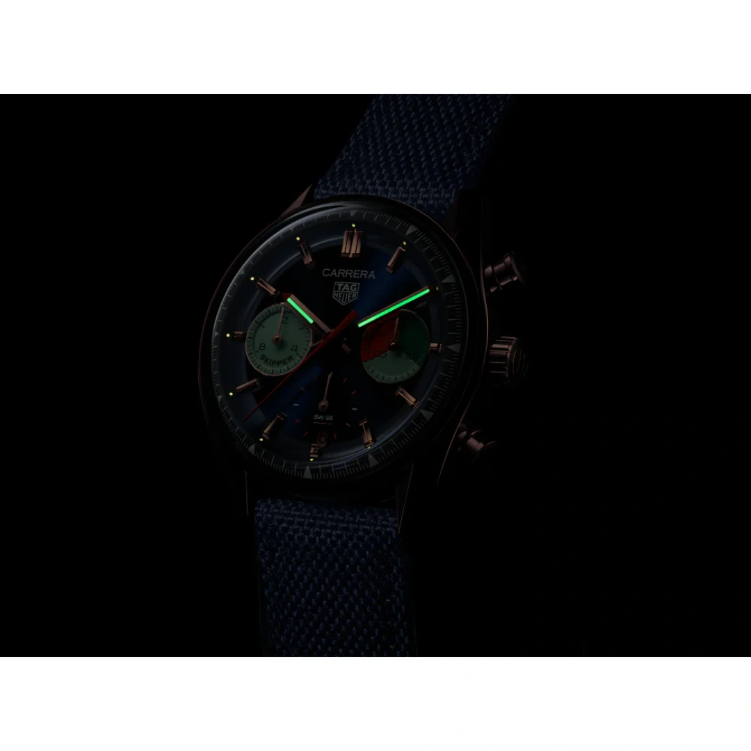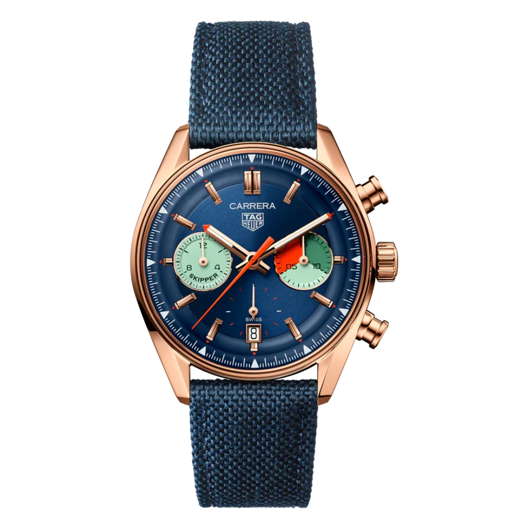 Embark on a luxury odyssey with the TAG Heuer Carrera Chronograph Skipper, a 39mm masterpiece celebrating the Maison's storied sailing legacy. Crafted with 18K 5N solid rose gold, this timepiece is a modern treasure for collectors and sailing enthusiasts alike.