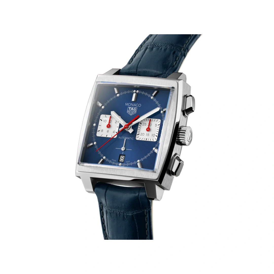 The first Monaco outfitted with an in-house Heuer 02 movement. Vintage, timeless design faithful to the blue, square-faced original Monaco, and packed with 80 hours power reserve.