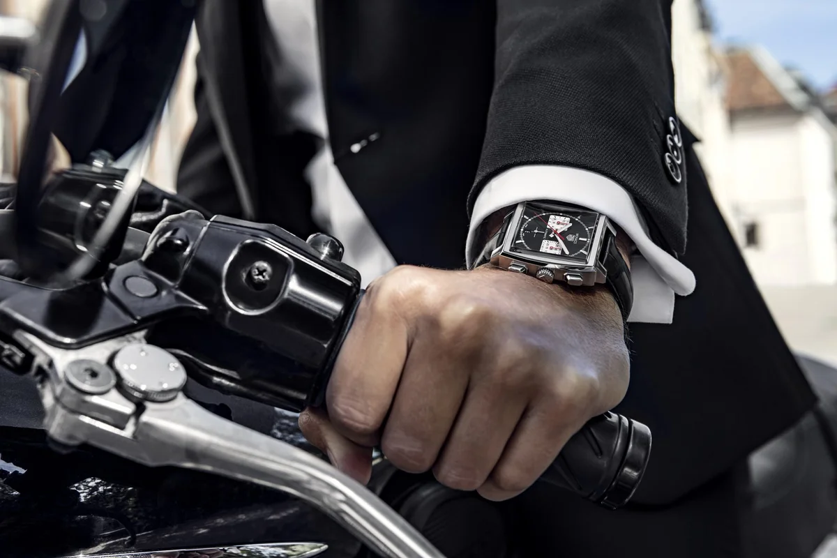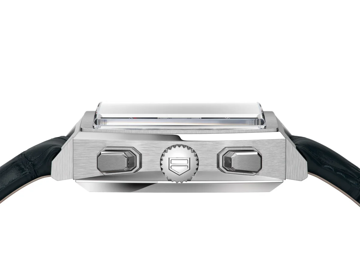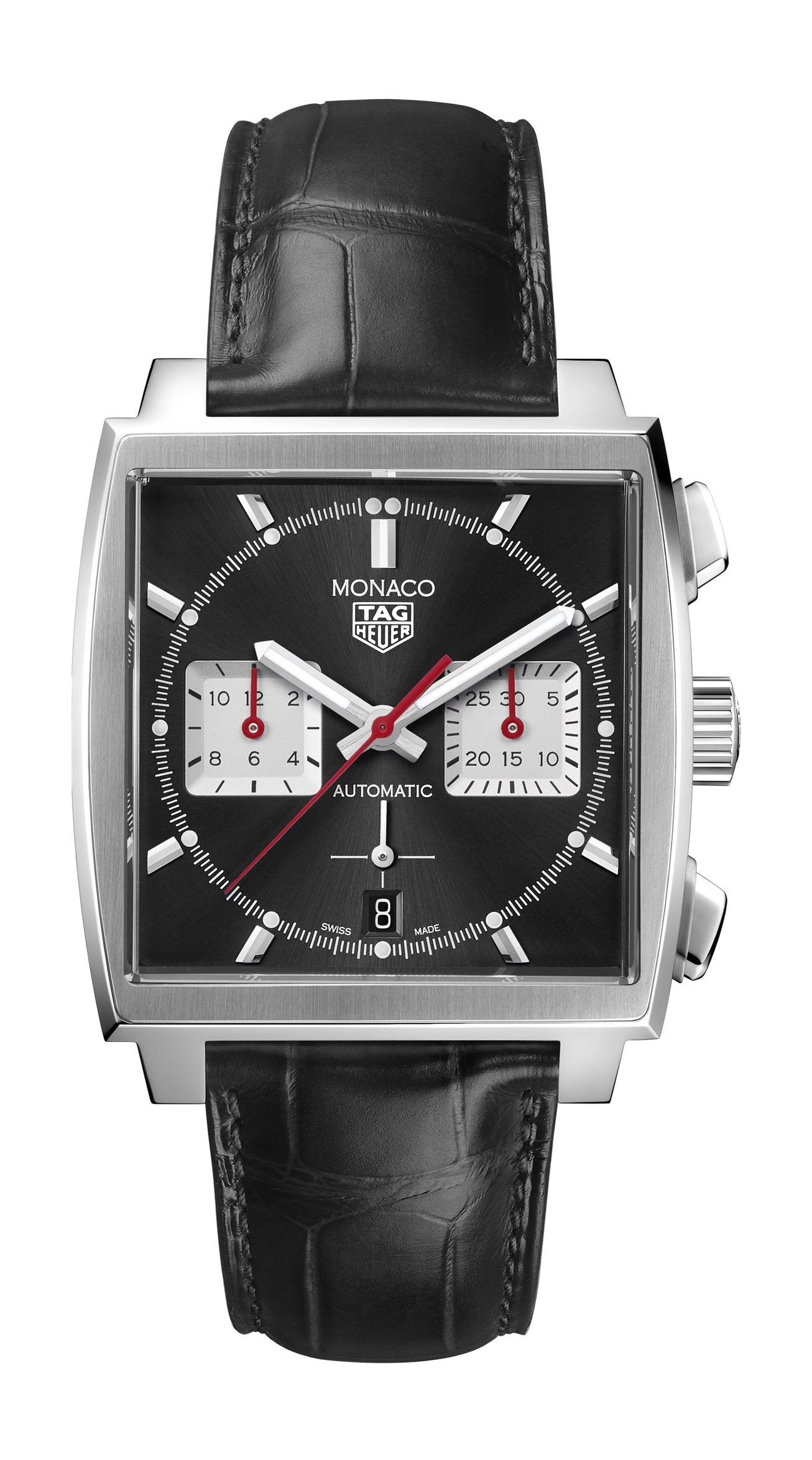 This elegant Monaco pairs its iconoclastic squared-off watch face with a stunning black dial and a black alligator strap. A maverick piece with our in-house automatic Heuer 02 movement, whose power reserve exceeds 80 hours.