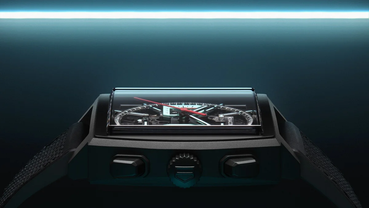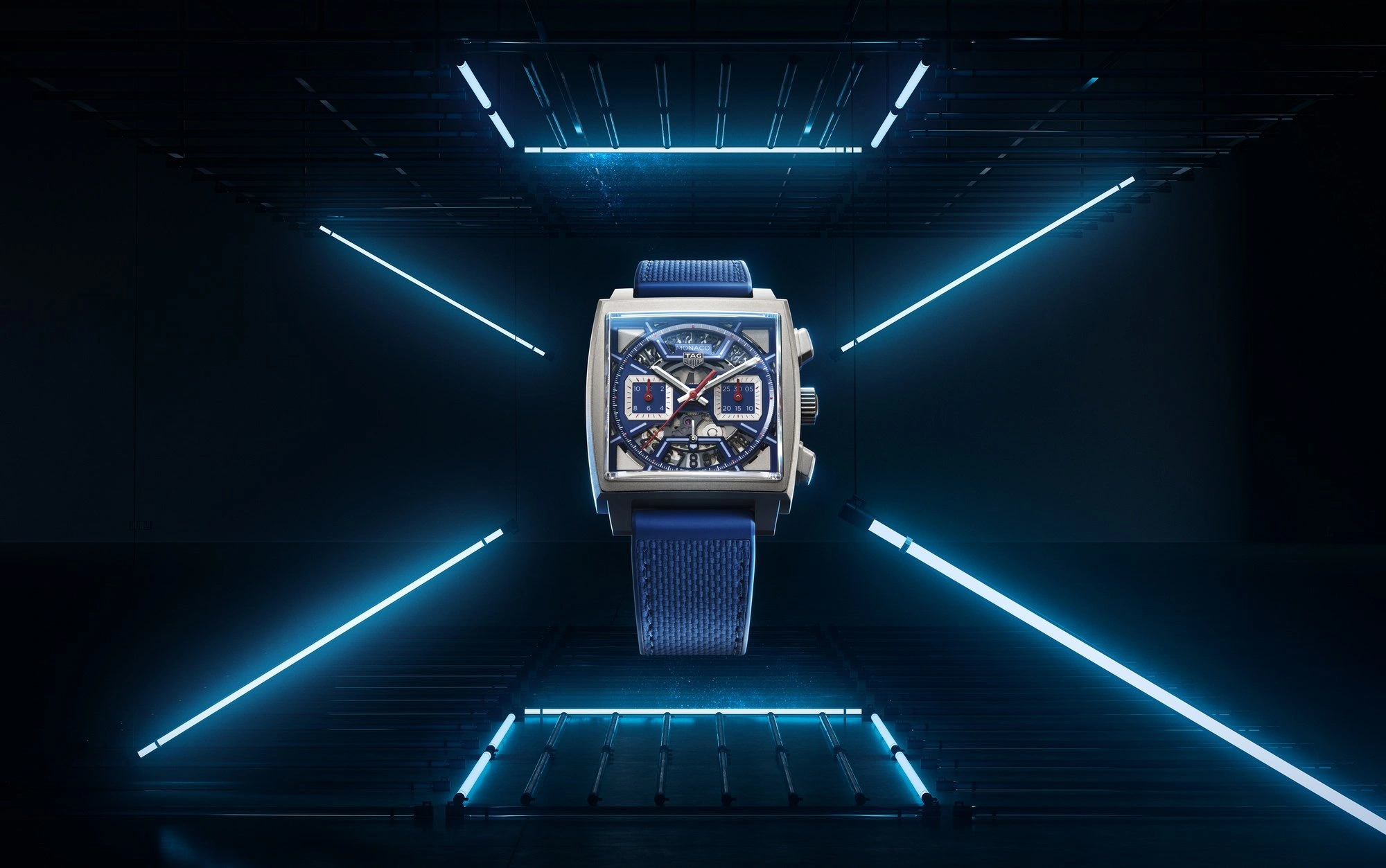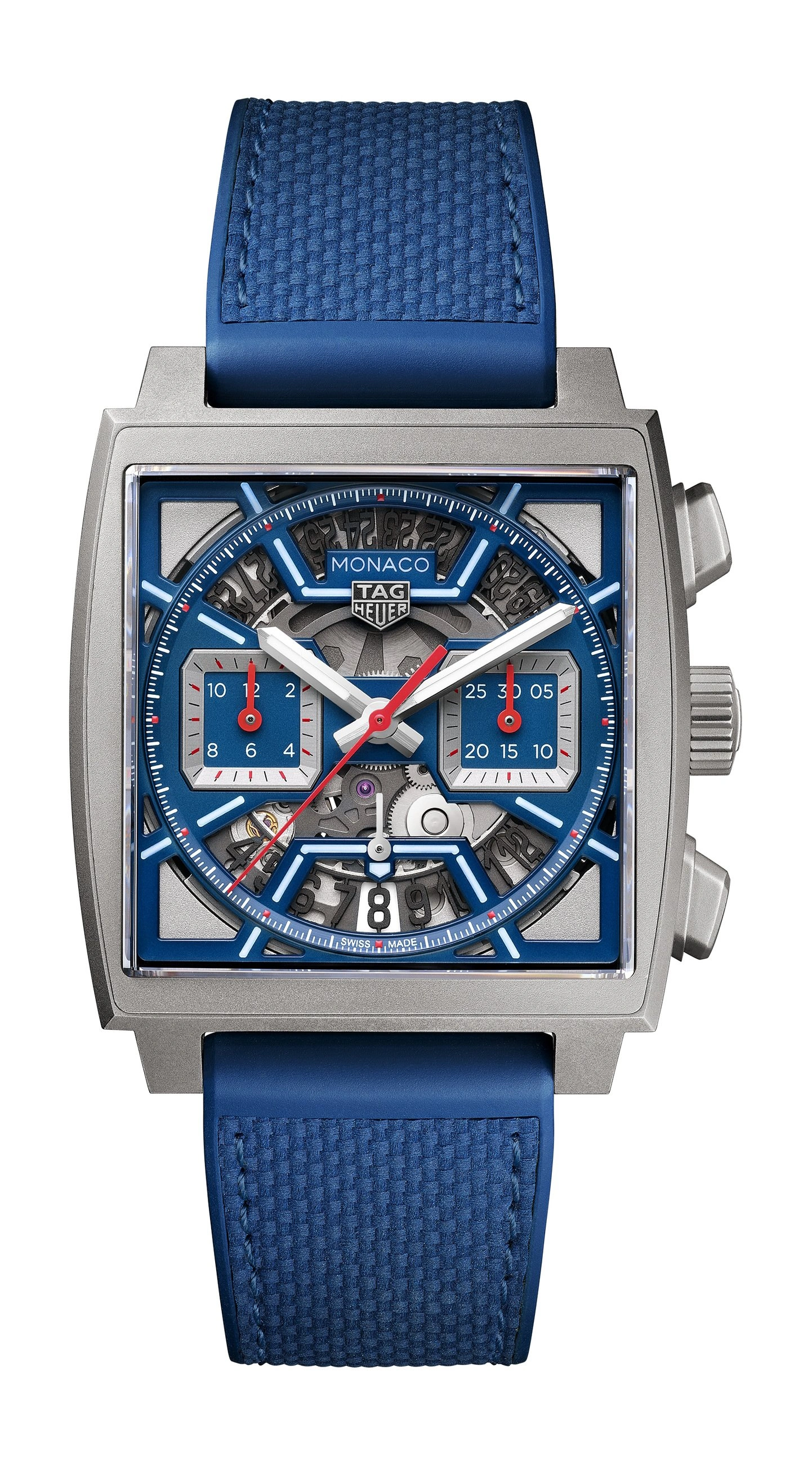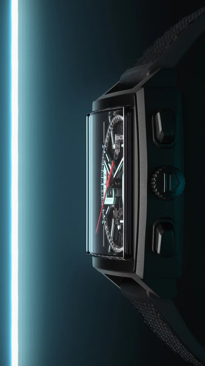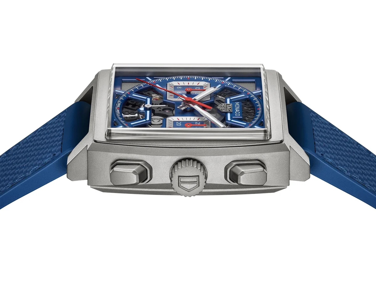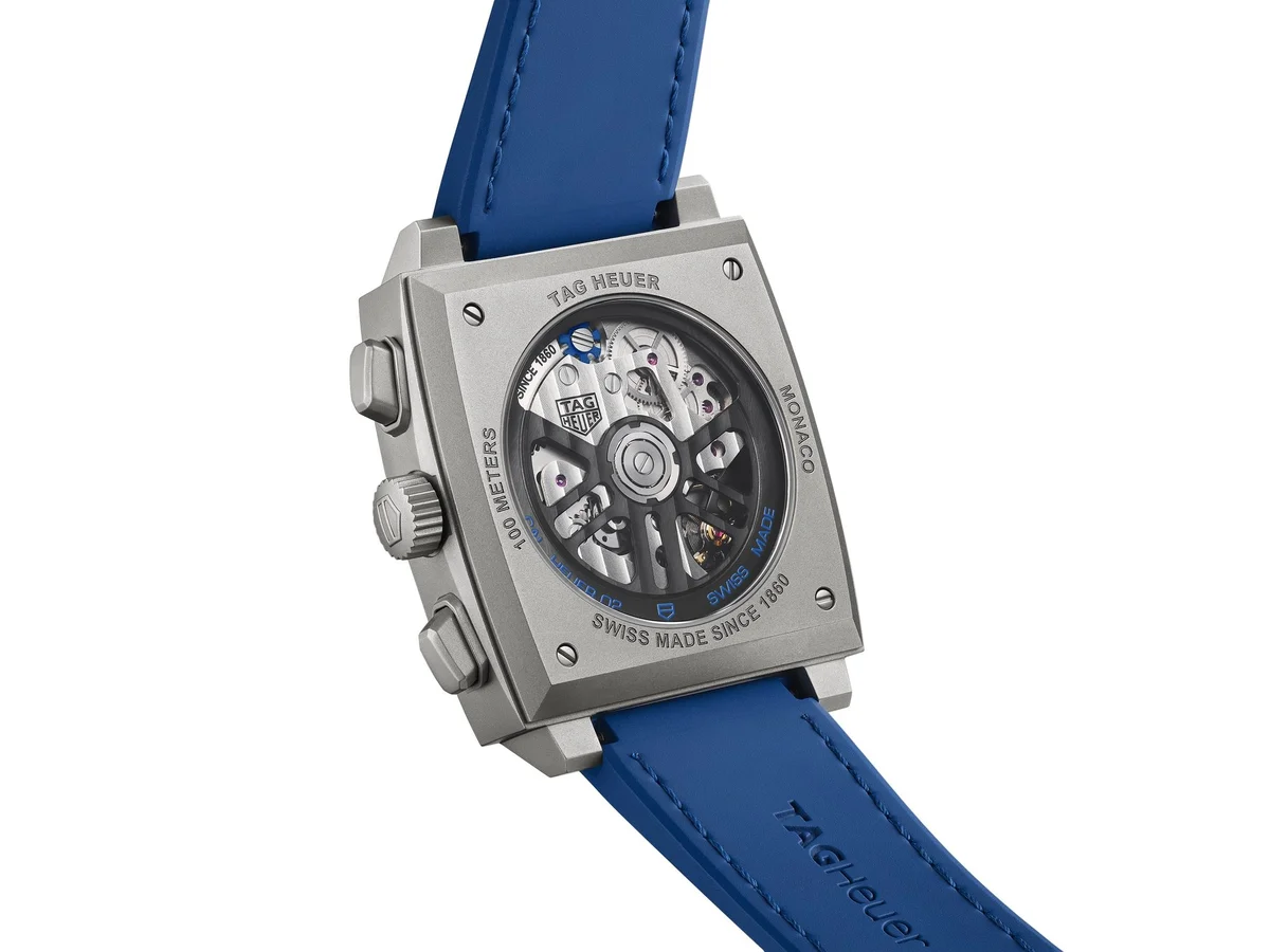 Inspired by the original Monaco blue dial, this TAG Heuer Monaco is an absolute technical gem. Integrating for the first time an intricately skeletonised dial showcasing bold colours, it is the quintessential square-shaped watchmaking icon.