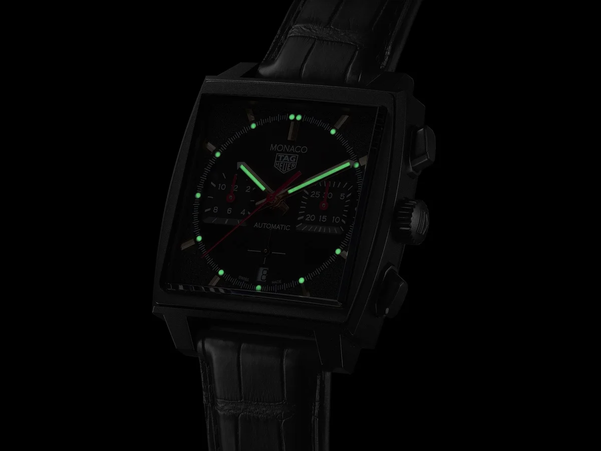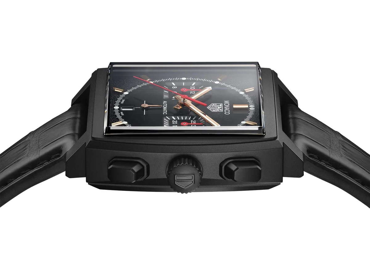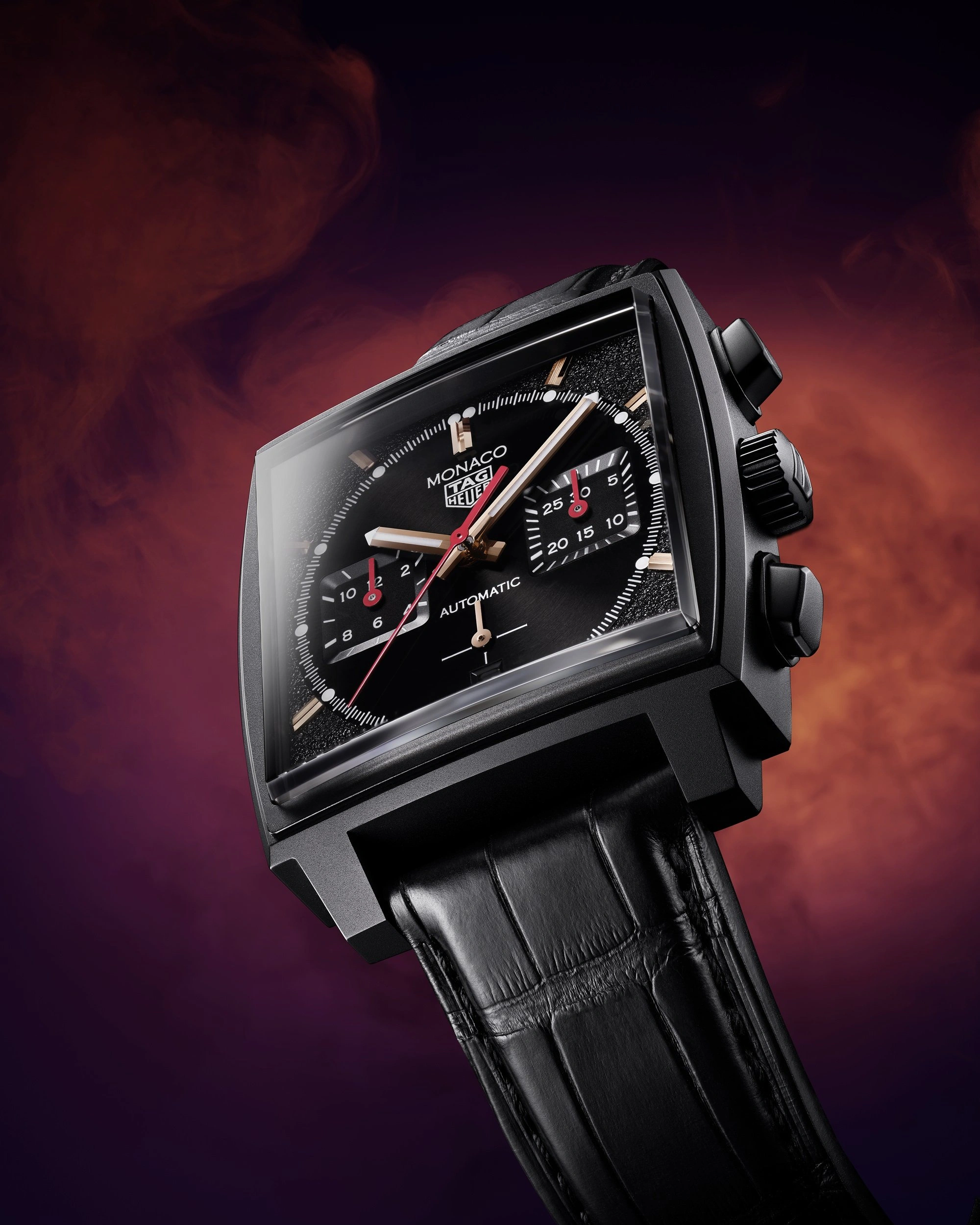 Ref. CBL2180.FC6497 A special edition for the Formula 1 Monaco Grand Prix 2022. Paying homage to the rare and mythical all-black Monaco of the 70s, this TAG Heuer Monaco Special Edition is a must have for connoisseurs. A fiercely elegant 39mm black DLC titanium case, houses the indomitable manufacture Calibre Heuer 02.