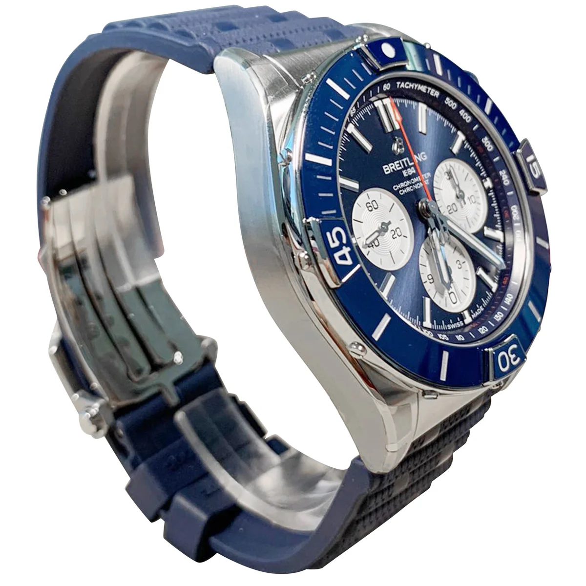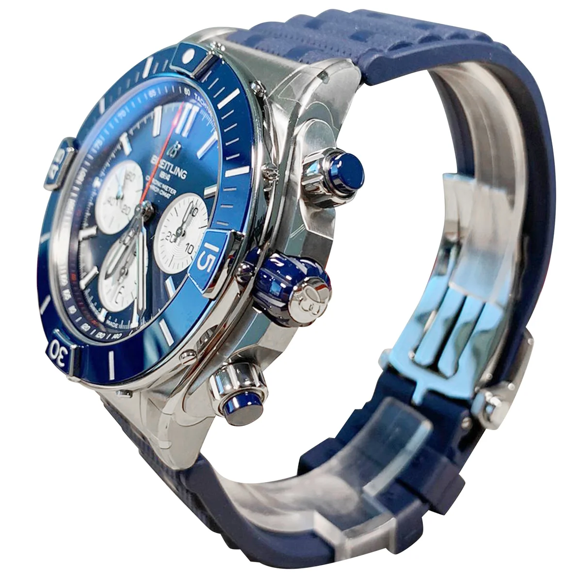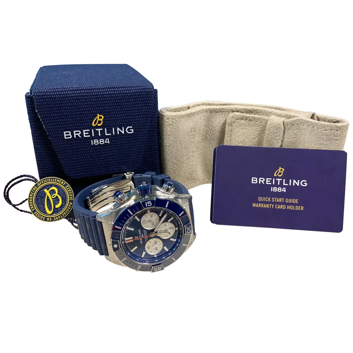 The Super Chronomat is inspired by the original 1980s Chronomat that Breitling created for aerobatic squadron aces. Bolder than all Chronomat watches, the Super Chronomat features several ceramic inserts – on the bezel, chronograph pushers and crown – and a rubber strap inspired by the «Rouleaux» bracelet. Furthermore, this multifunctional sports watch is also suitable for the most elegant occasions.