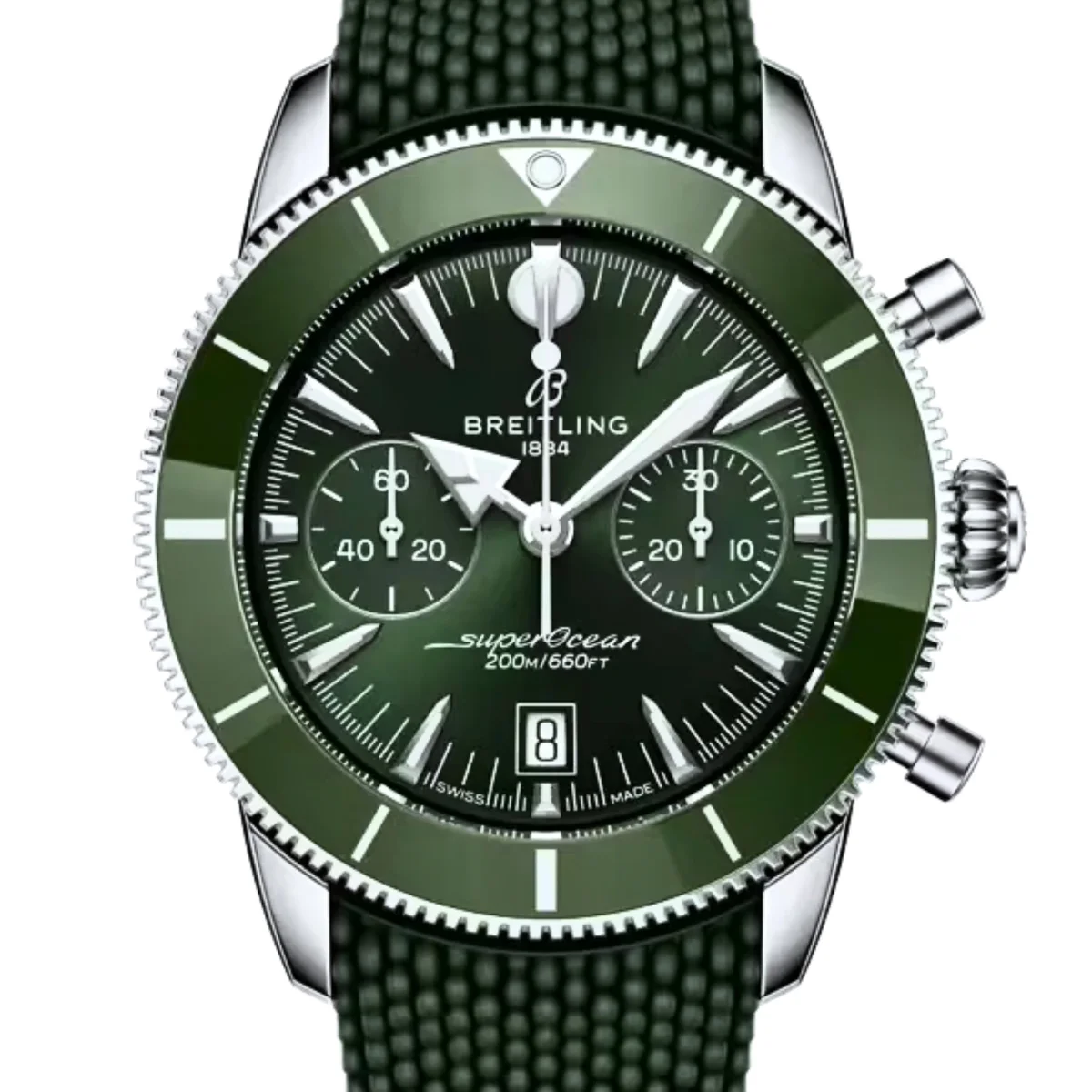The Breitling Superocean Heritage Chronograph AB0156361L1S1 debuted in 2025 as part of the updated Superocean Heritage collection. This edition features a 42.00mm stainless steel case paired with a Green dial and a matching ceramic bezel inlay. It is powered by Breitling’s in-house Caliber 01, a COSC-certified chronograph movement with a column wheel and vertical clutch, delivering up to 70 hours of power reserve.