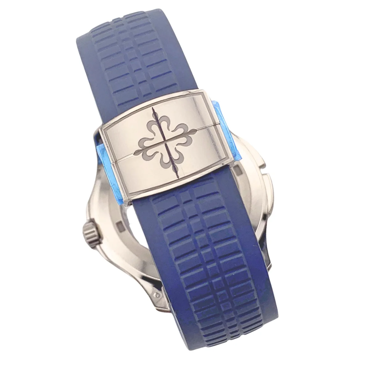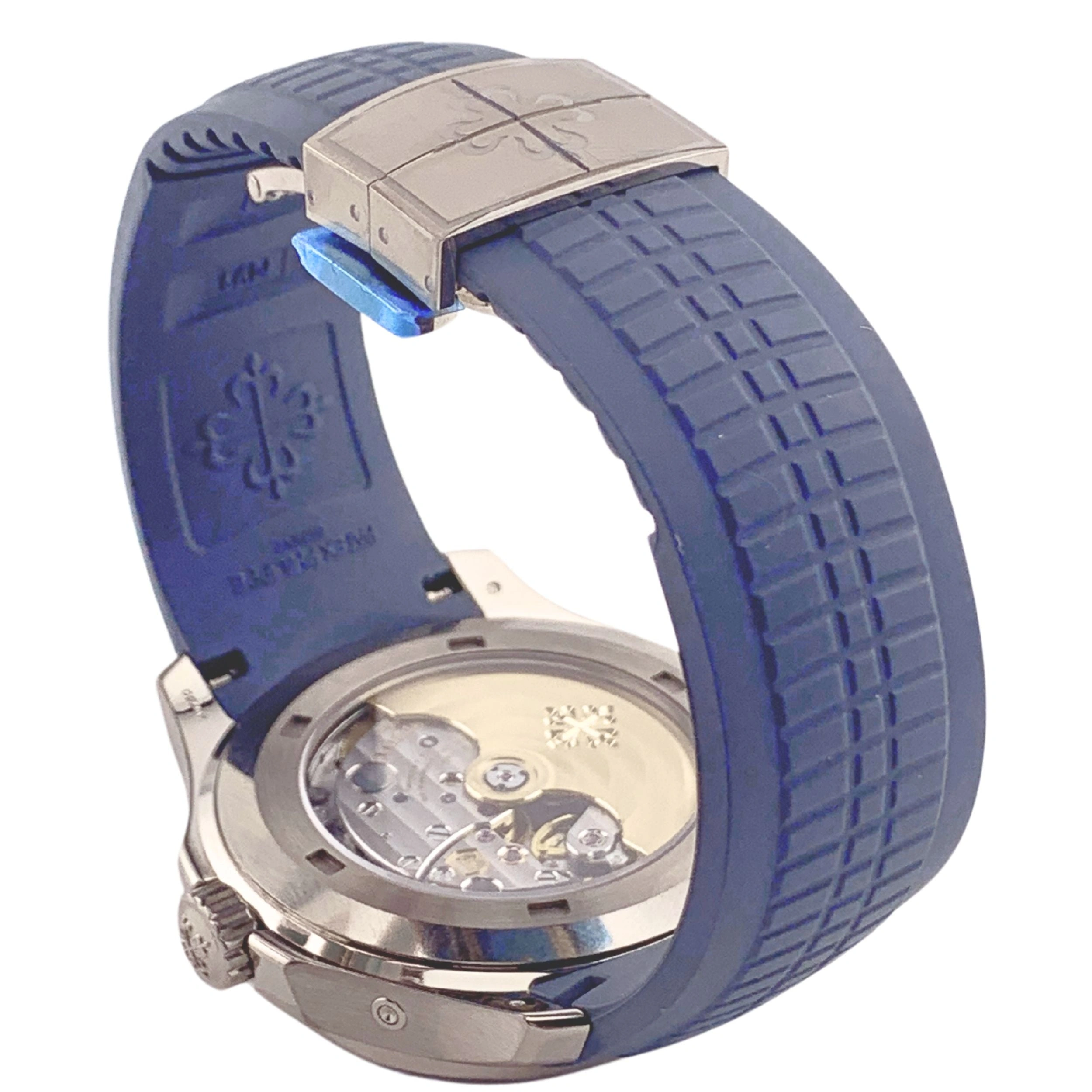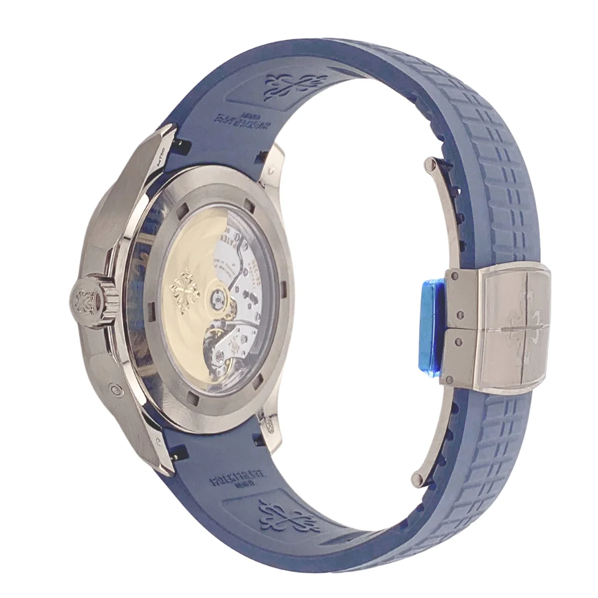 A contemporary, elegant and casual travel watch, the Aquanaut Travel Time Reference 5164 is offered in its first white gold version. The opaline blue-gray dial is adorned with the emblematic Aquanaut pattern, while the integrated composite strap matching the dial color features a patented white gold fold-over clasp. The case houses self-winding 26-330 S C FUS caliber with Travel Time display, combining excellent legibility with user-friendliness. The date is indexed to local time.