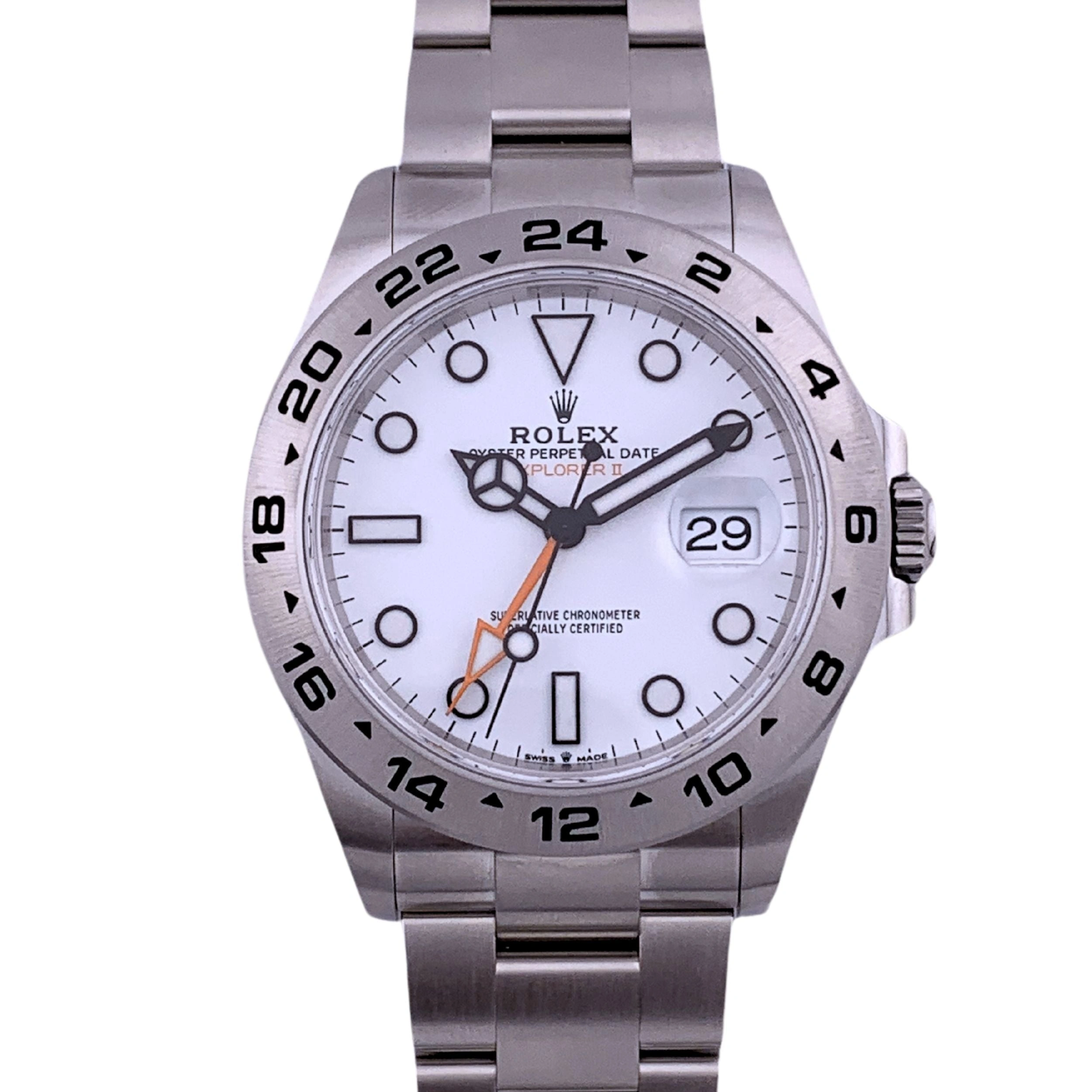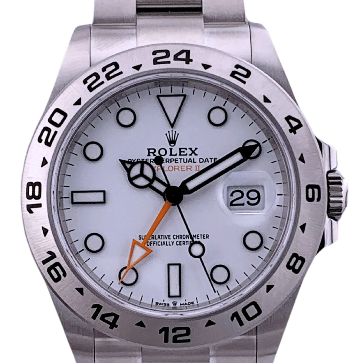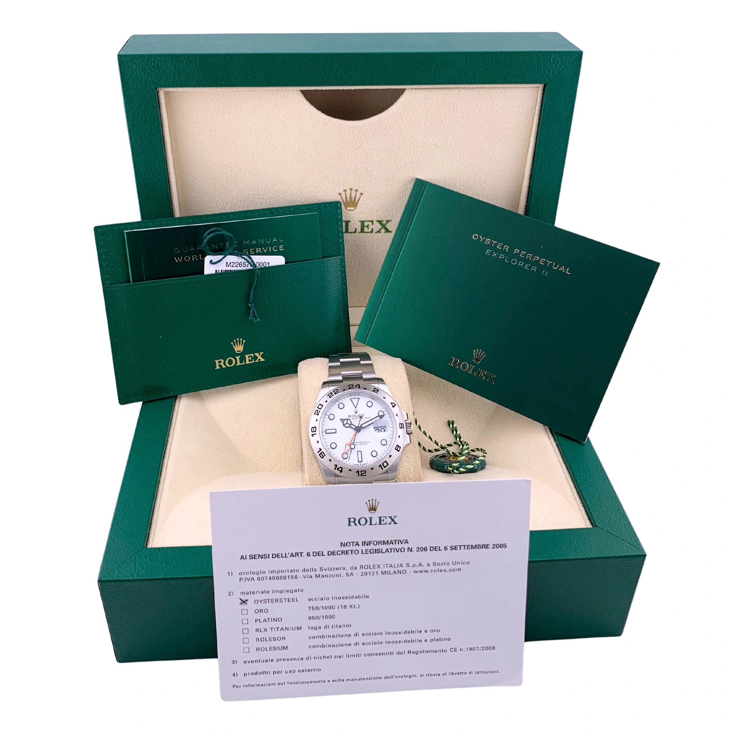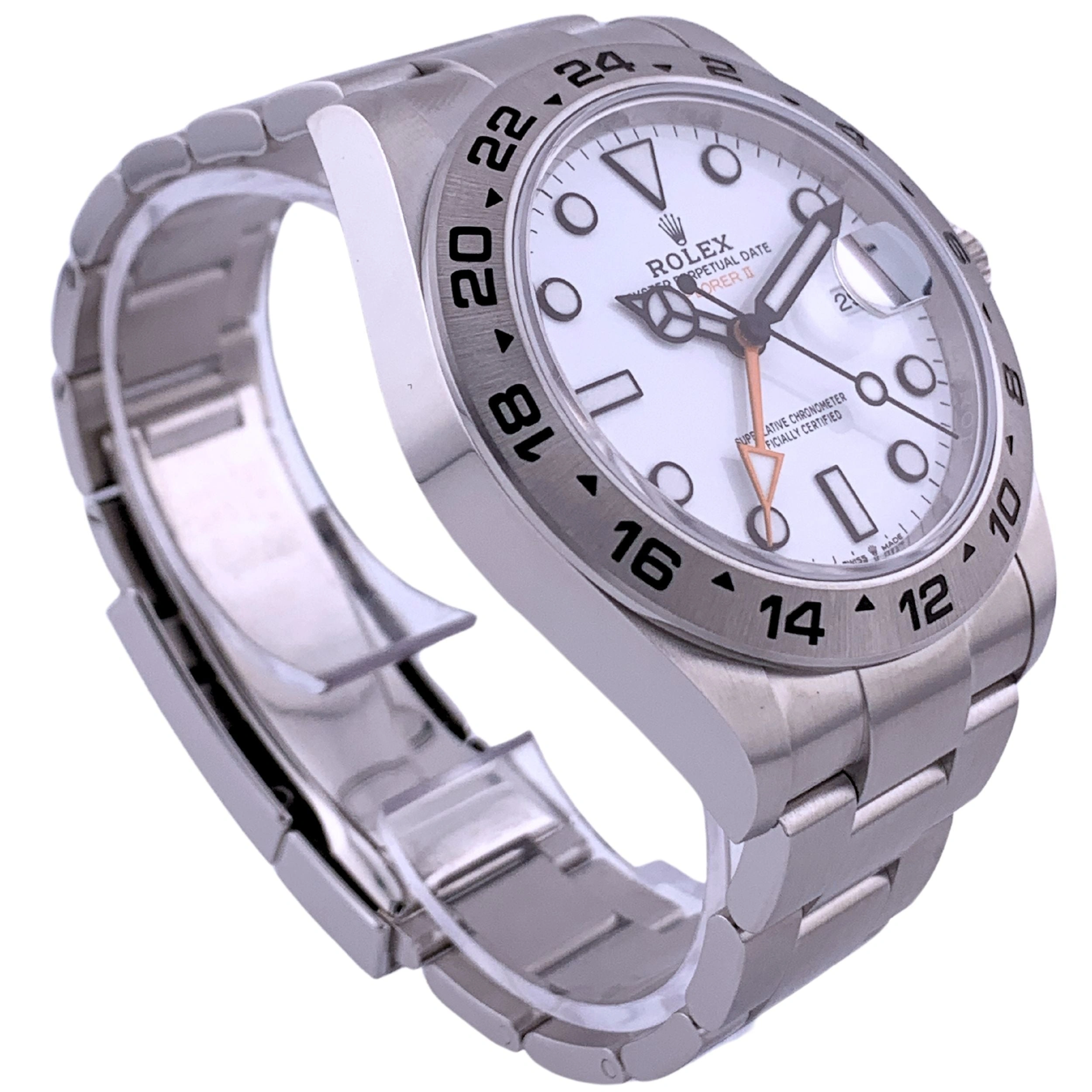 Introduced in 2021, the Rolex Explorer II reference 226570-0001 has a Stainless Steel case of 42.00mm, housing the self-winding caliber 3285. The dial is White.