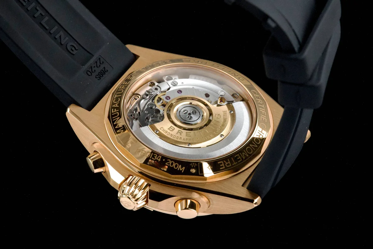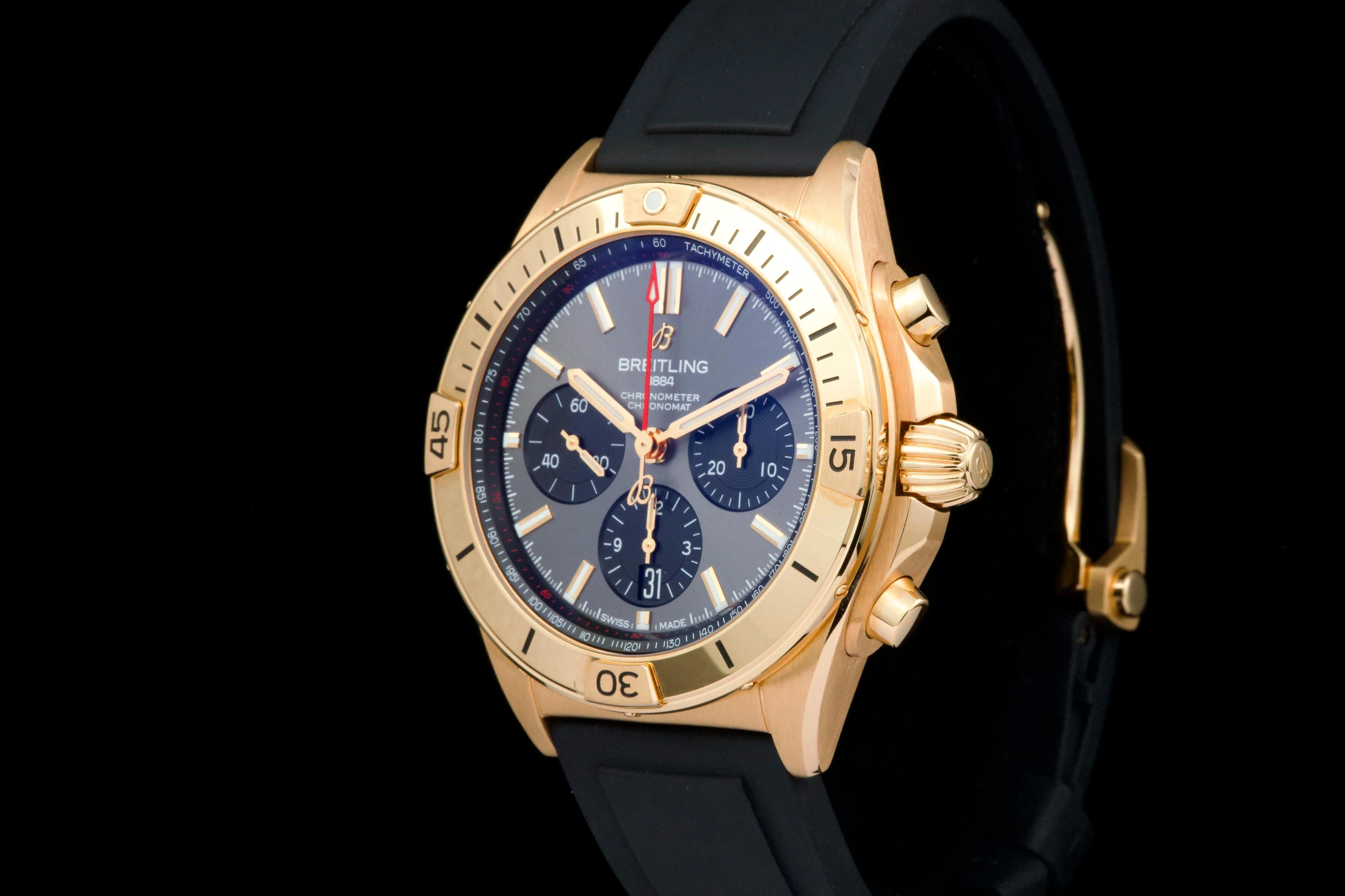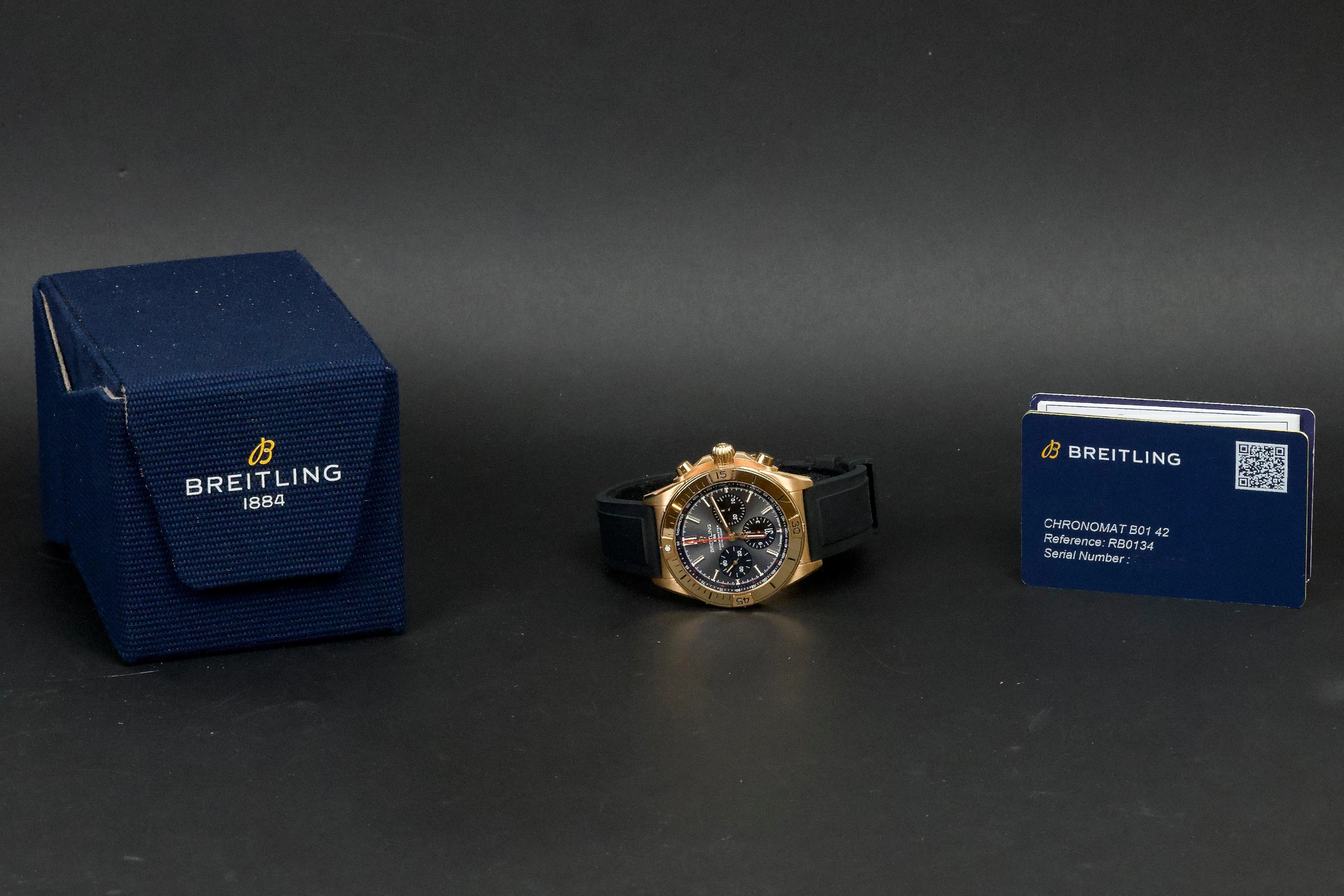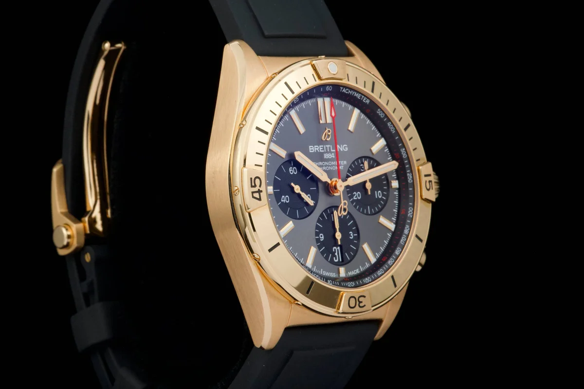 A luxurious and sporty Breitling Chronomat 42 in 18k rose gold, reference RB0134101B1S1, sold in 2022 and offered as a Full Set with box and papers.