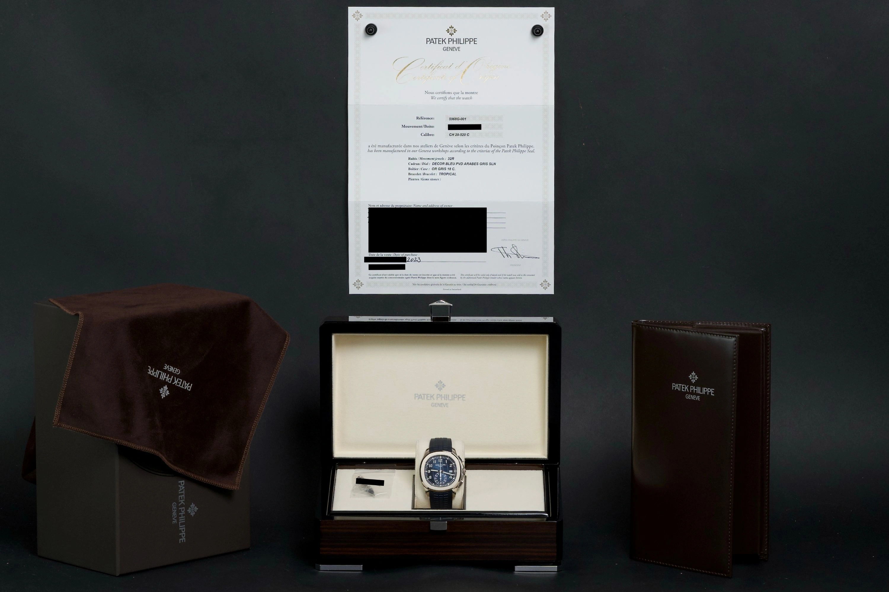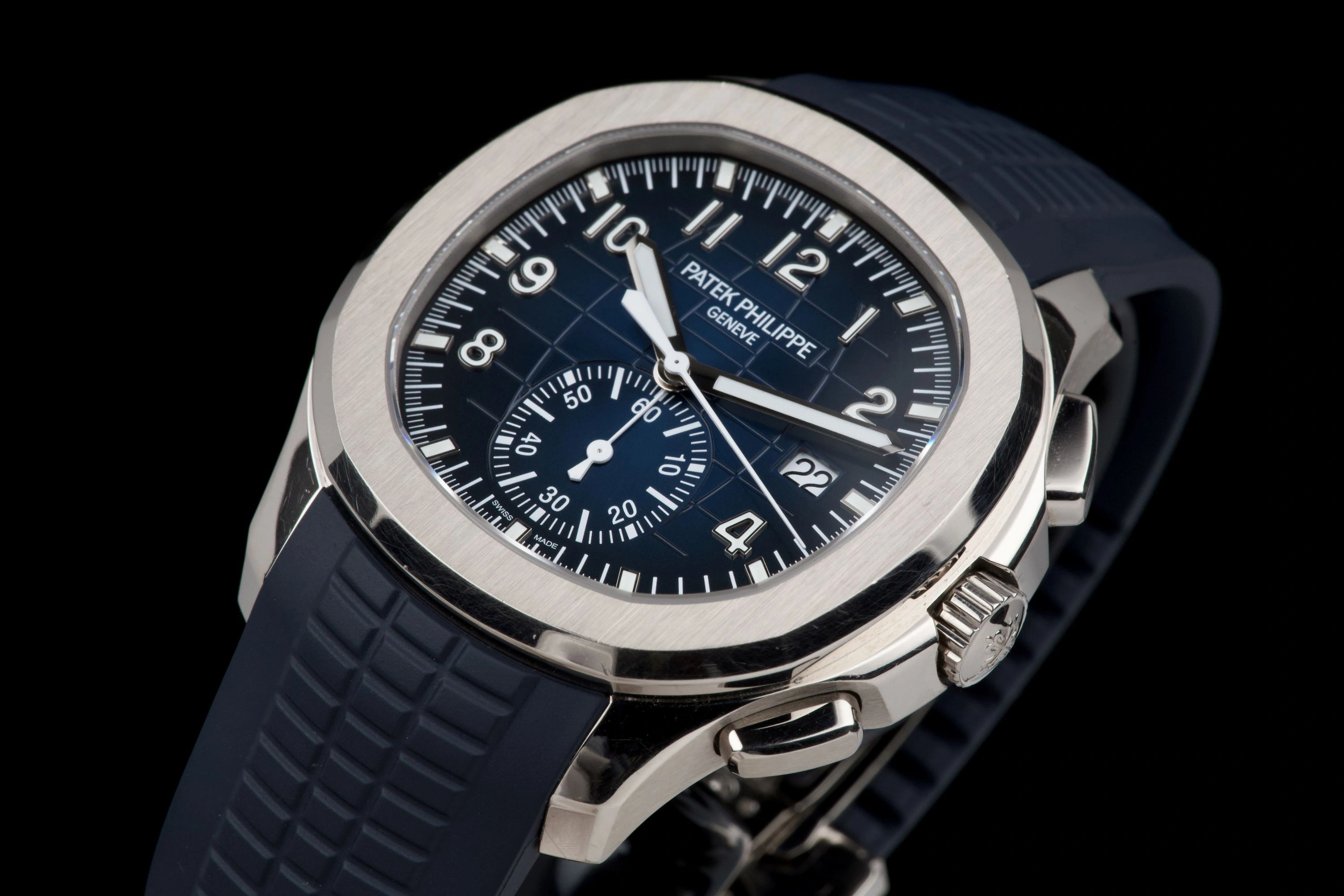 Patek Philippe Aquanaut Chronograph, blue dial, full set from 2023.