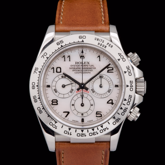 An absolutely stunning example of the Rolex Daytona 16519 in white gold, preserved in exceptional, near “New Old Stock” condition.