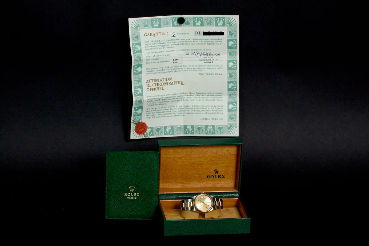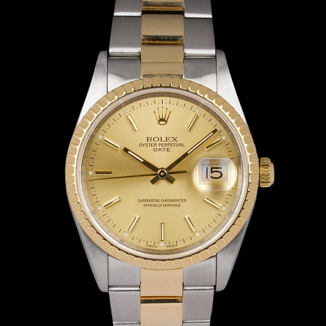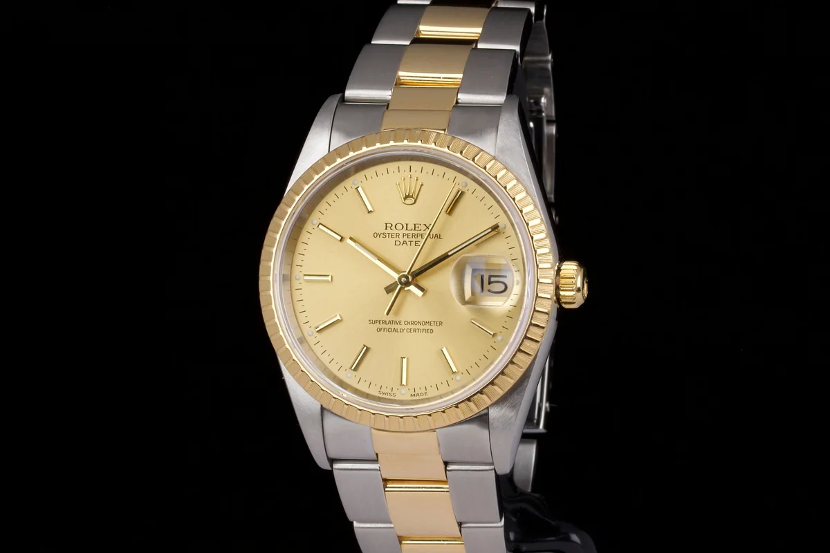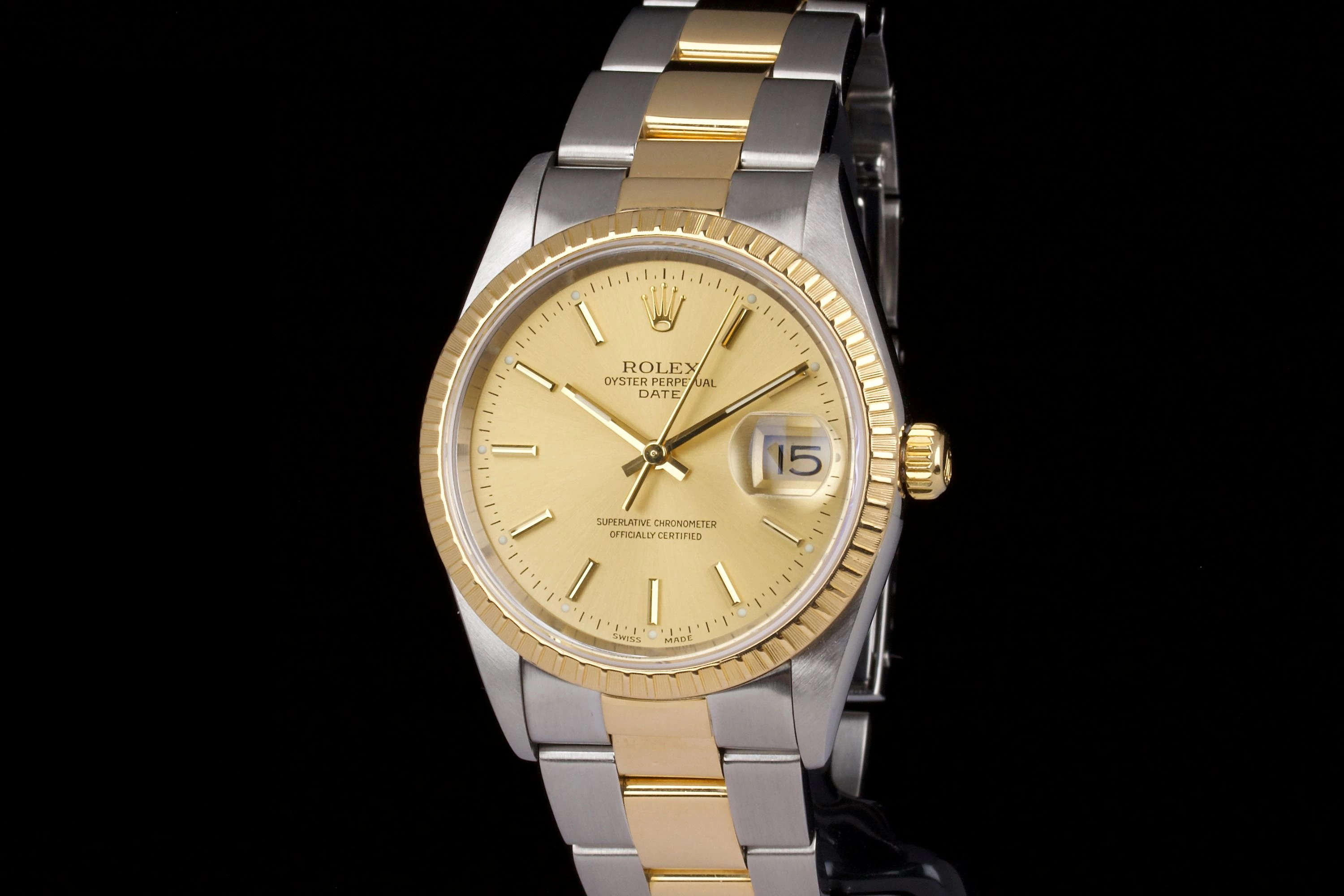 Rolex Date 34mm Two Tone 15233 Box/Papers 2001, excellent case that has just been polished by our watchmaker