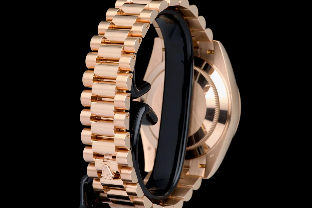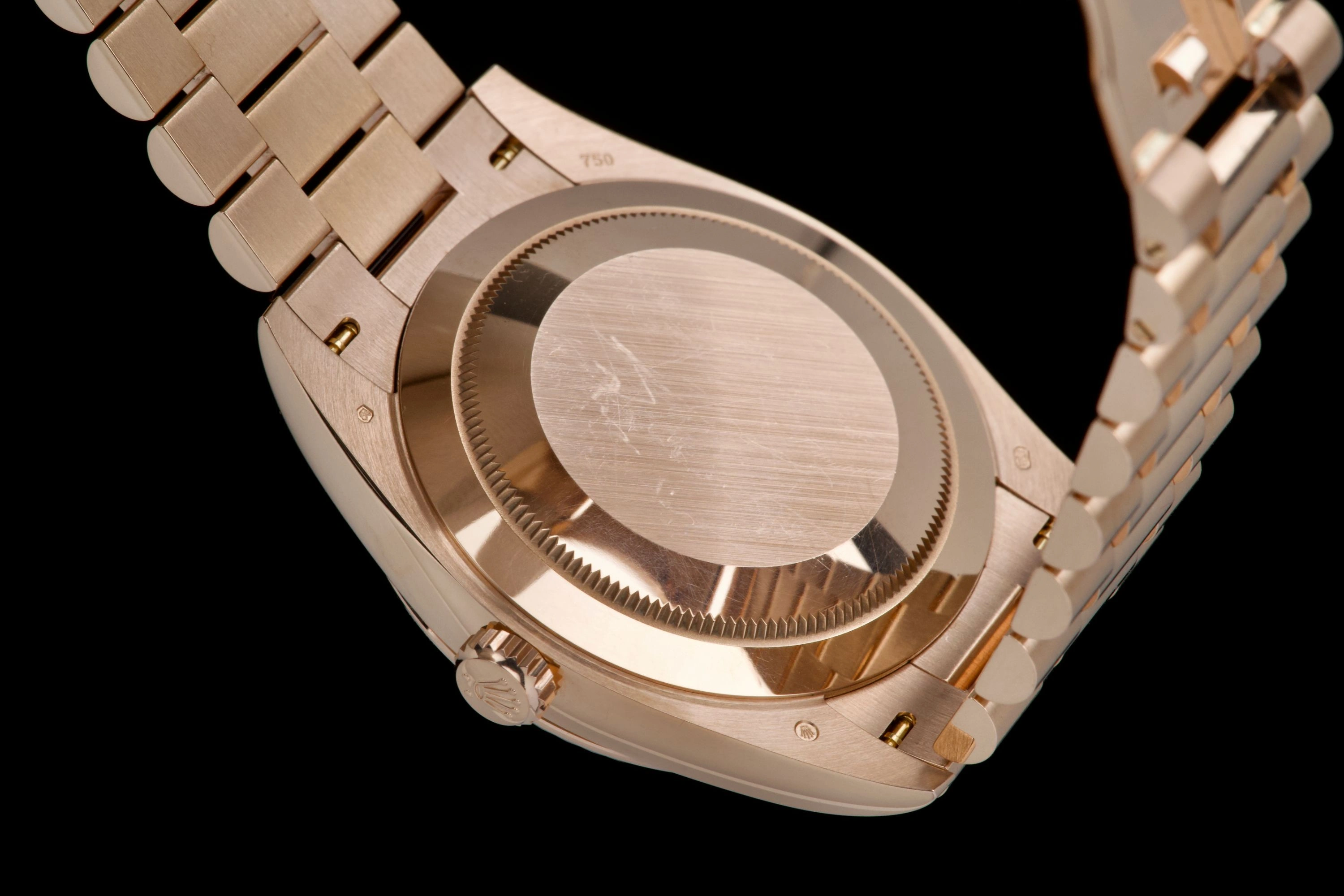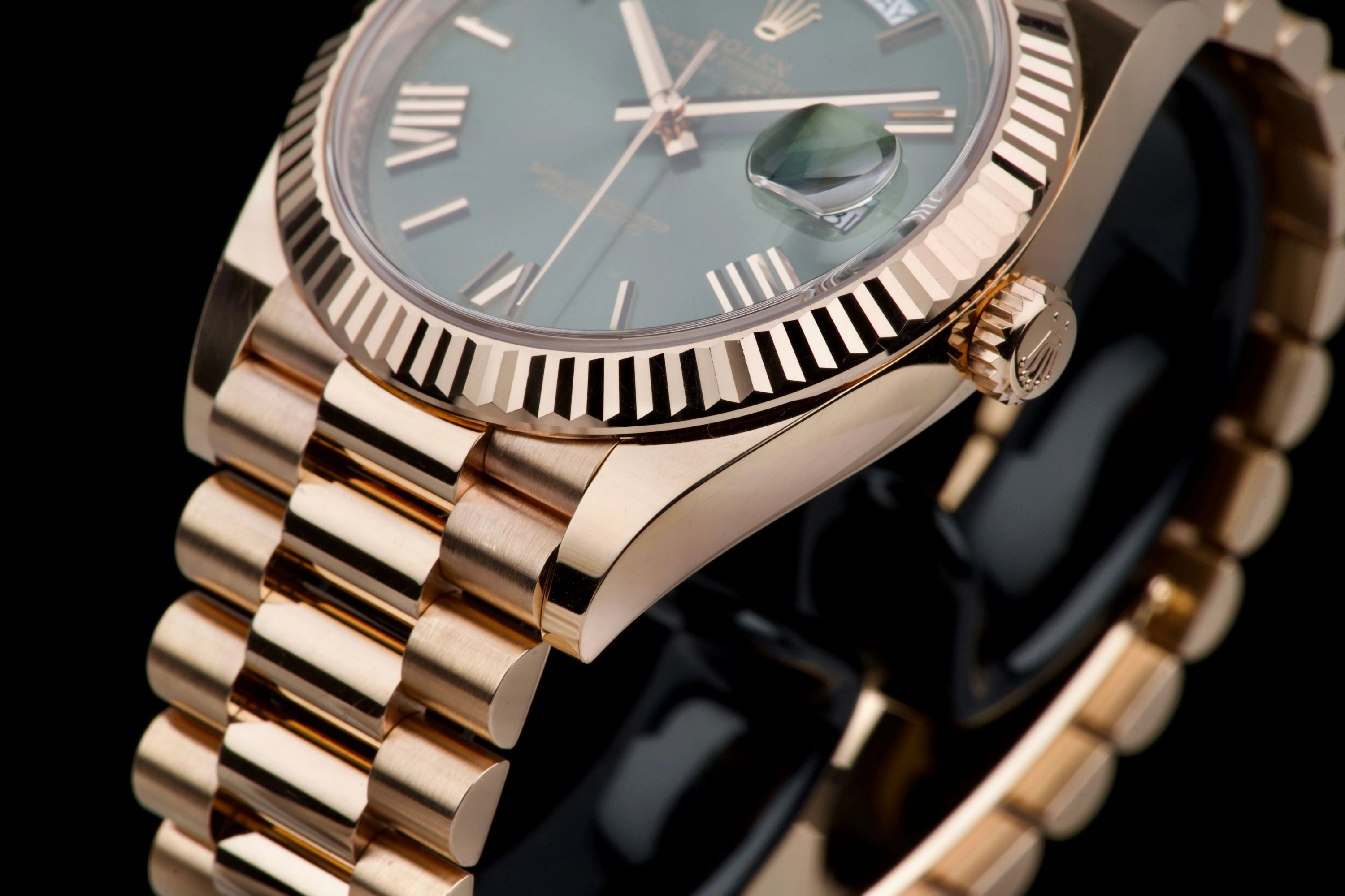 Purchased new in Switzerland in 2020. A stunning and collectible example of the Day-Date 40 in Everose gold with olive green dial