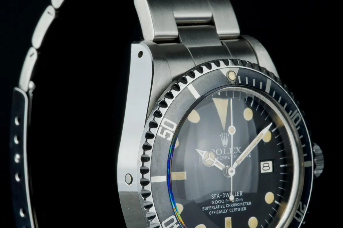 Sea-Dweller Reference 1665 . Production Years: 1967 – 1983 (Approx.) Functions: Time w/ Running Seconds, Date Display, Helium Escape Valve