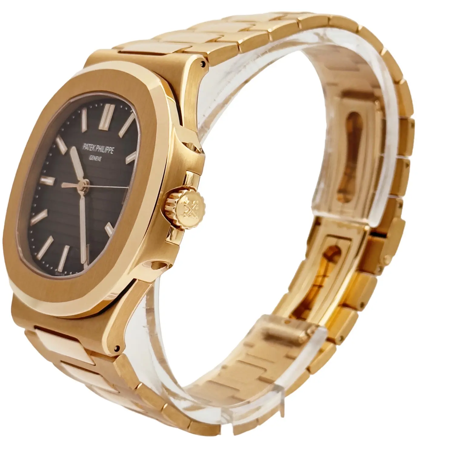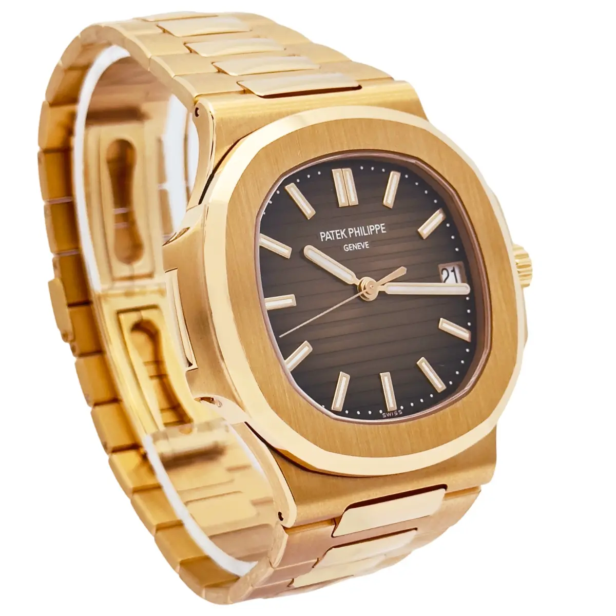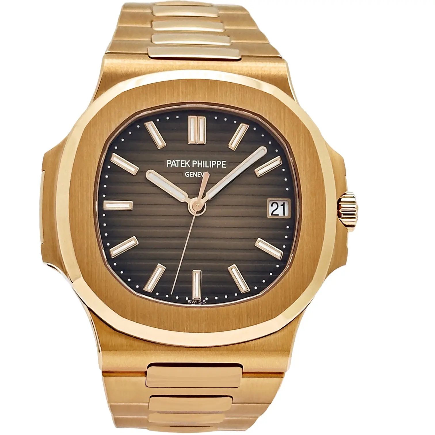 Introduced at BaselWorld 2015, the Patek Philippe 5711/1R-001 features a case and bracelet in rose cold and a rich brown dial. Its movement is the self-winding caliber 324 S C.
