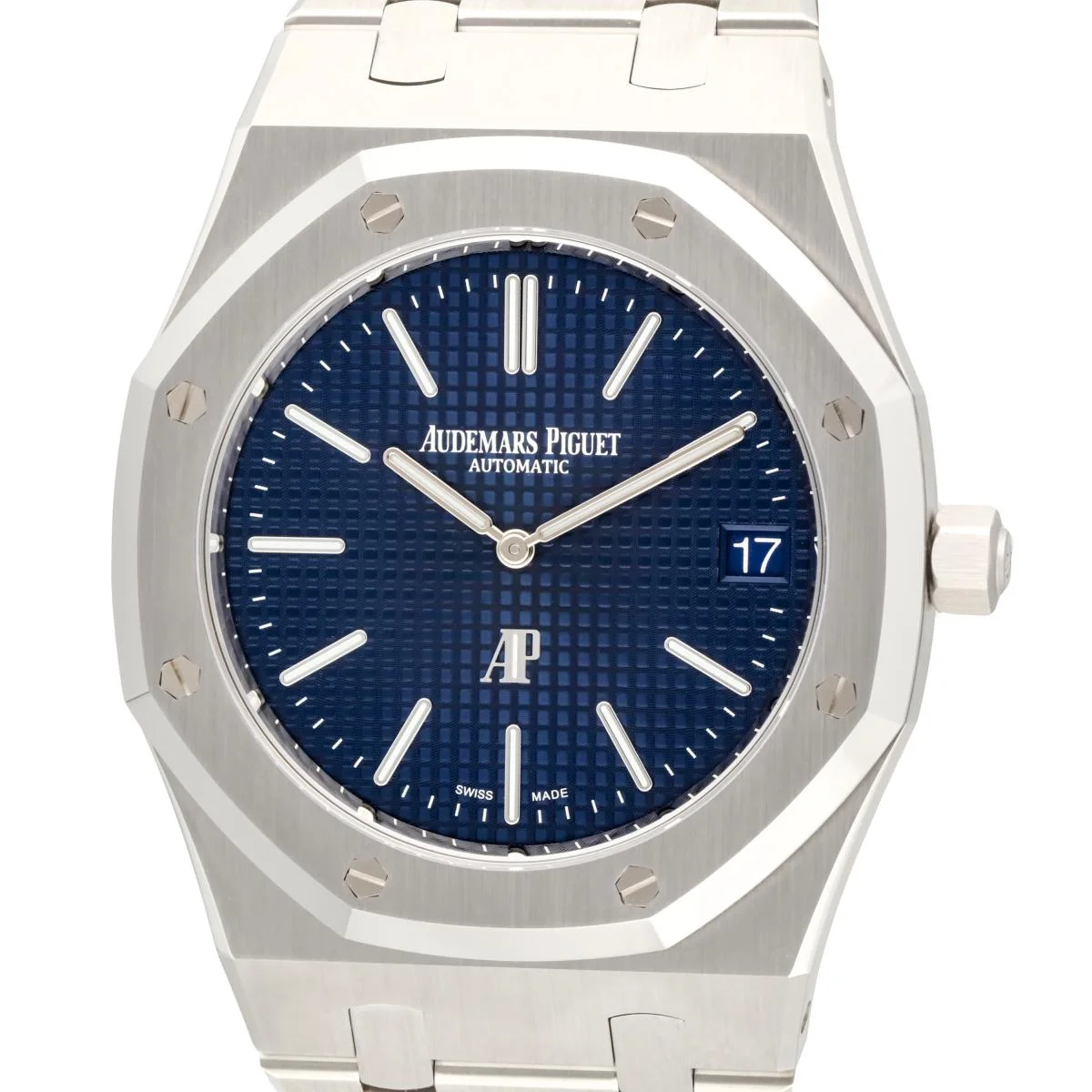 The Audemars Piguet Royal Oak reference 16202ST.OO.1240ST.02 was introduced in 2022 as a replacement for the '50th Anniversary' model introduced earlier that year. The octagonal case, here in Stainless Steel, measures 39.00mm across, holding the new self-winding caliber AP 7121. The dial is Blue. “Bleu nuit nuage 50” dial with “Petite Tapisserie” pattern, white gold applied hour-markers and Royal Oak hands with luminescent coating.