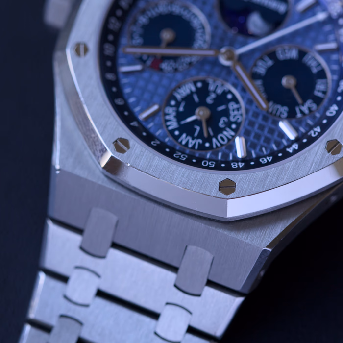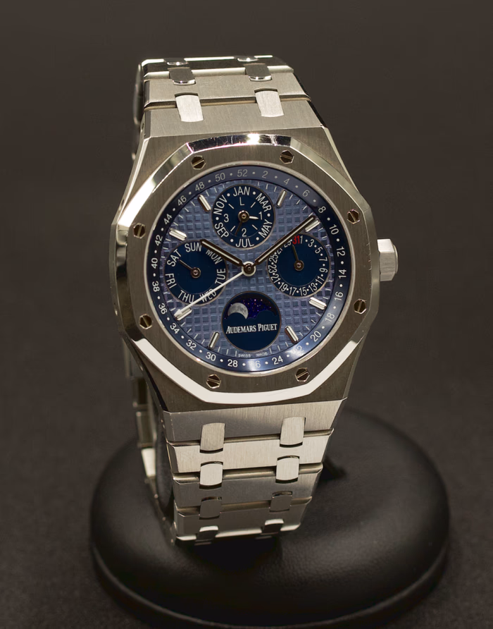 The watch has just been completely serviced with polishing by Audemars Piguet, it has hardly been worn since, some signs of wear on the case, bezel and bracelet.