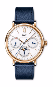 The IWC Portinfo Perpetual Calendar IW344602 was introduced in 2022. This watch pairs a Portofino style case (Rose Gold, 40.00mm) with a self-winding movement with perpetual calendar and moonphase (caliber 82650). The dial is Silver.