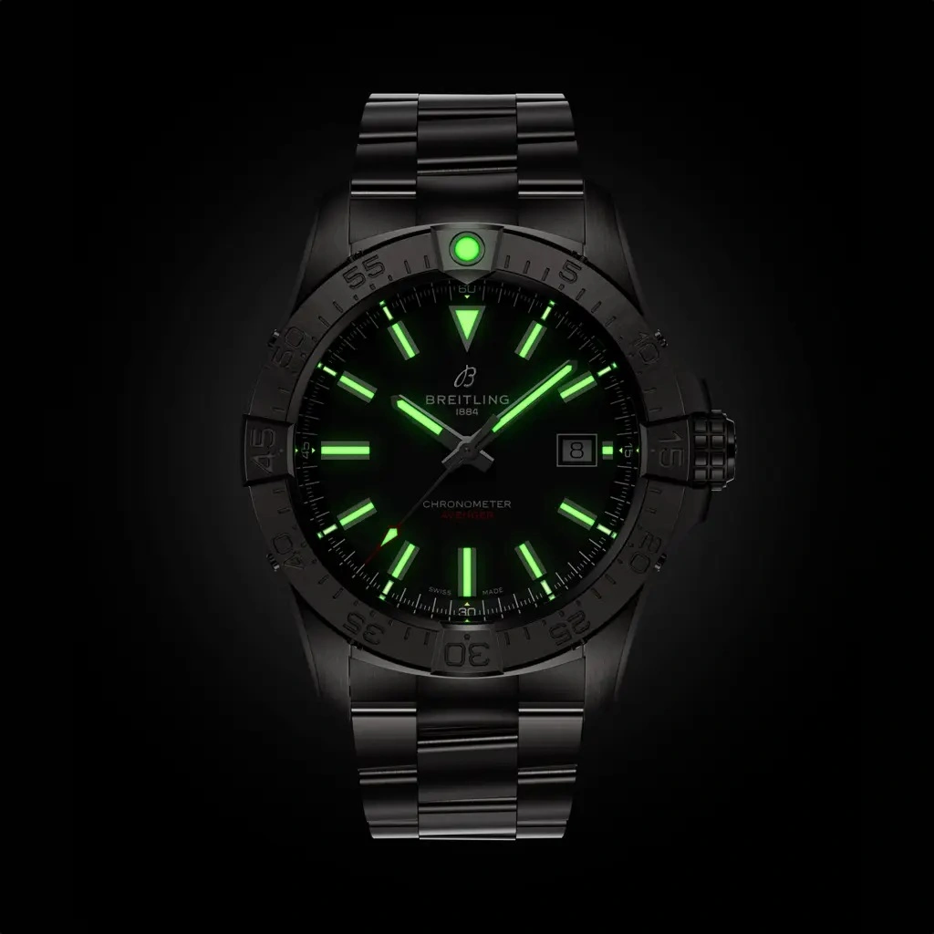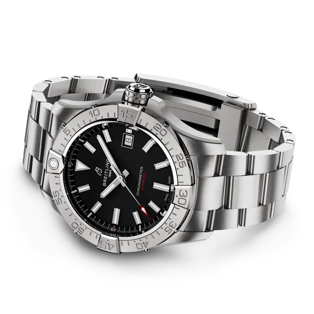 The Breitling Avenger Automatic 42 A17328101B1A1 debuted in 2023. This watch has a stainless steel case water resistant up to 300 meters, which houses the self-winding caliber Caliber 17. For this version, the dial is Black.