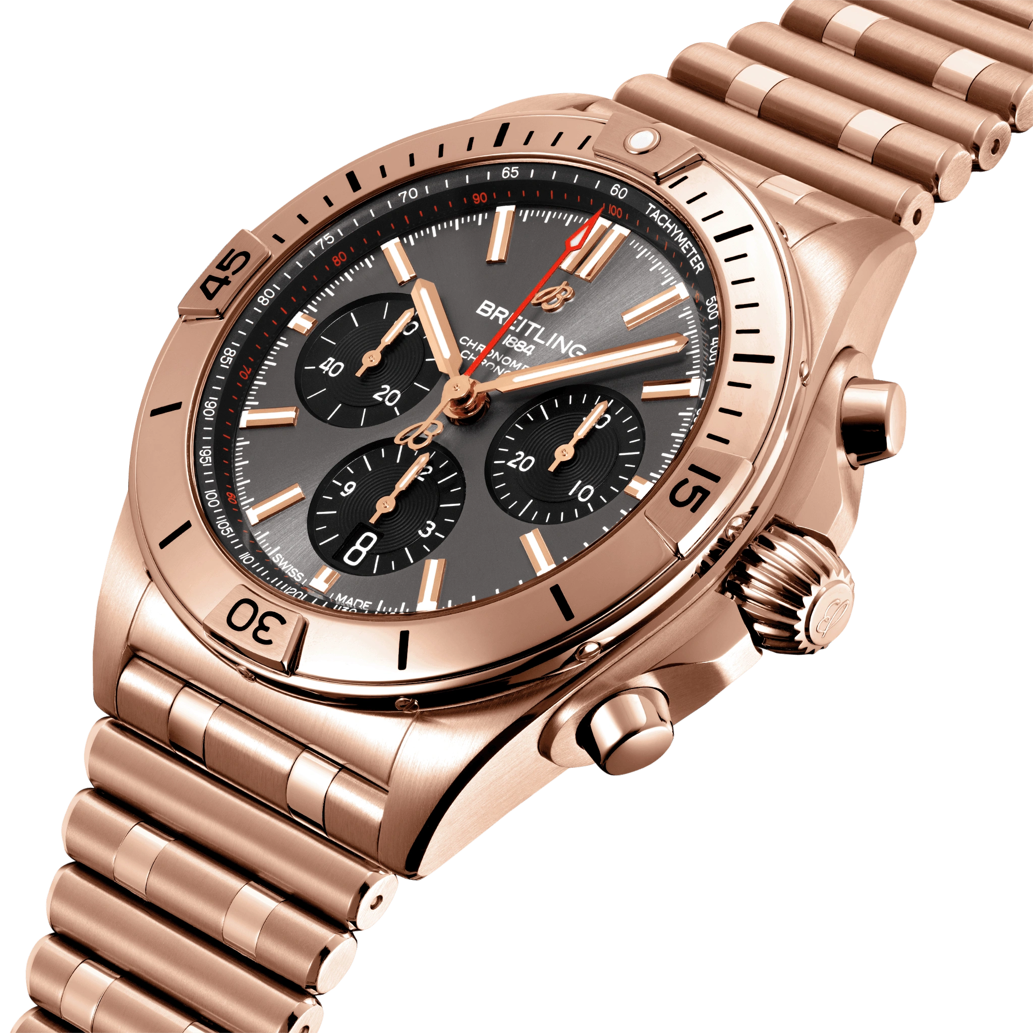 Breitling is a Swiss watchmaker that has been pushing boundaries since 1884. Iconic models include the Navitimer, Chronomat, Superocen, Classic AVI, Premier, Top Time, Chronomatic, Avenger and Professional. Our historic innovations include the modern chronograph and the navigational tool watch – a series of precision instruments that powered incredible achievements. But today we continue to break new ground with our casual, inclusive attitude, unique modern-retro style and commitment to sustainable luxury, via products inspired by incredible experiences in the air, on land and at sea.