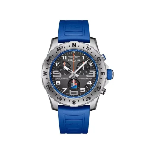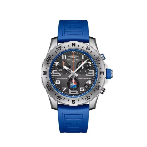 Introduced in 2020, the Breitling Pro Endurance pairs an ultra-light titapast ('Breitlight') case with a SuperQuartz chronograph movement (caliber Caliber 82). Reference E823103A1M1S1 was added to the collection in 2023, reaffirming the brand's partnership with the Ironman triathlon franchise. Contrary to other watches in the Endurance Pro collection, this watch has a titanium case and a Grey dial with gradient finish.