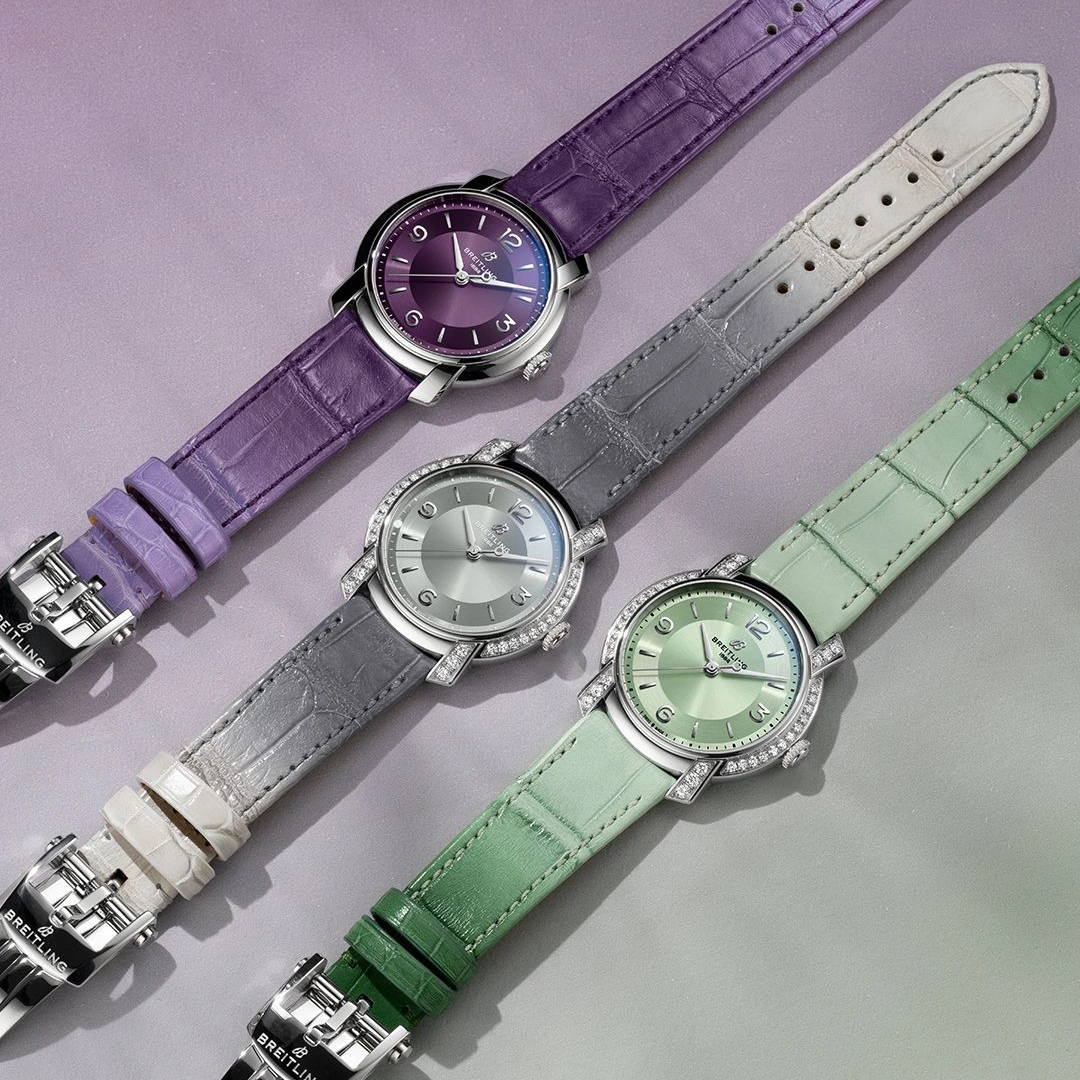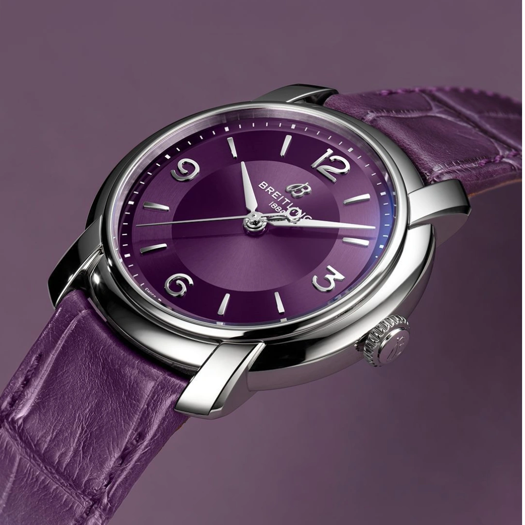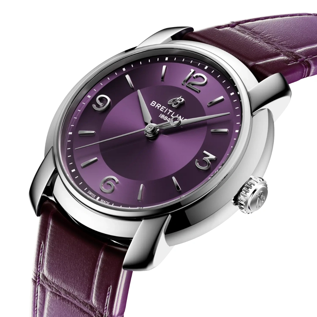 Lady Premier Automatic 36 Ref. A10310121Q1P1 . In 2025, Breitling brings that unscripted elegance into the present with the new Lady Premier. Sculptural silhouettes, radiant hues, cascading diamonds, and ombré finishes define its playful yet elevated design language. Minimalist numerals, lozenge hands, and a sculptural crown enhance its jewelry-like appeal. The 36 mm automatic models pair rich dials with gradient alligator-leather straps and are powered by the COSC-certified Caliber 10 automatic movement. Lady Premier celebrates women who live with ease, confidence, and a touch of fun.